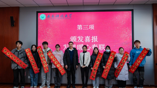 会上,刘训明报告了beats365唯一官方网站员工资助工作开展情况。2023年度国家奖学金、国家励志奖学金获得者张春莲等同学分享了自己的青春励志故事,鼓励同学们心怀梦想,坚定目标,成就更好的自己。活动现场,与会老师向国家励志奖学金获得员工颁发喜报,向同学们赠送了暖心春联。
