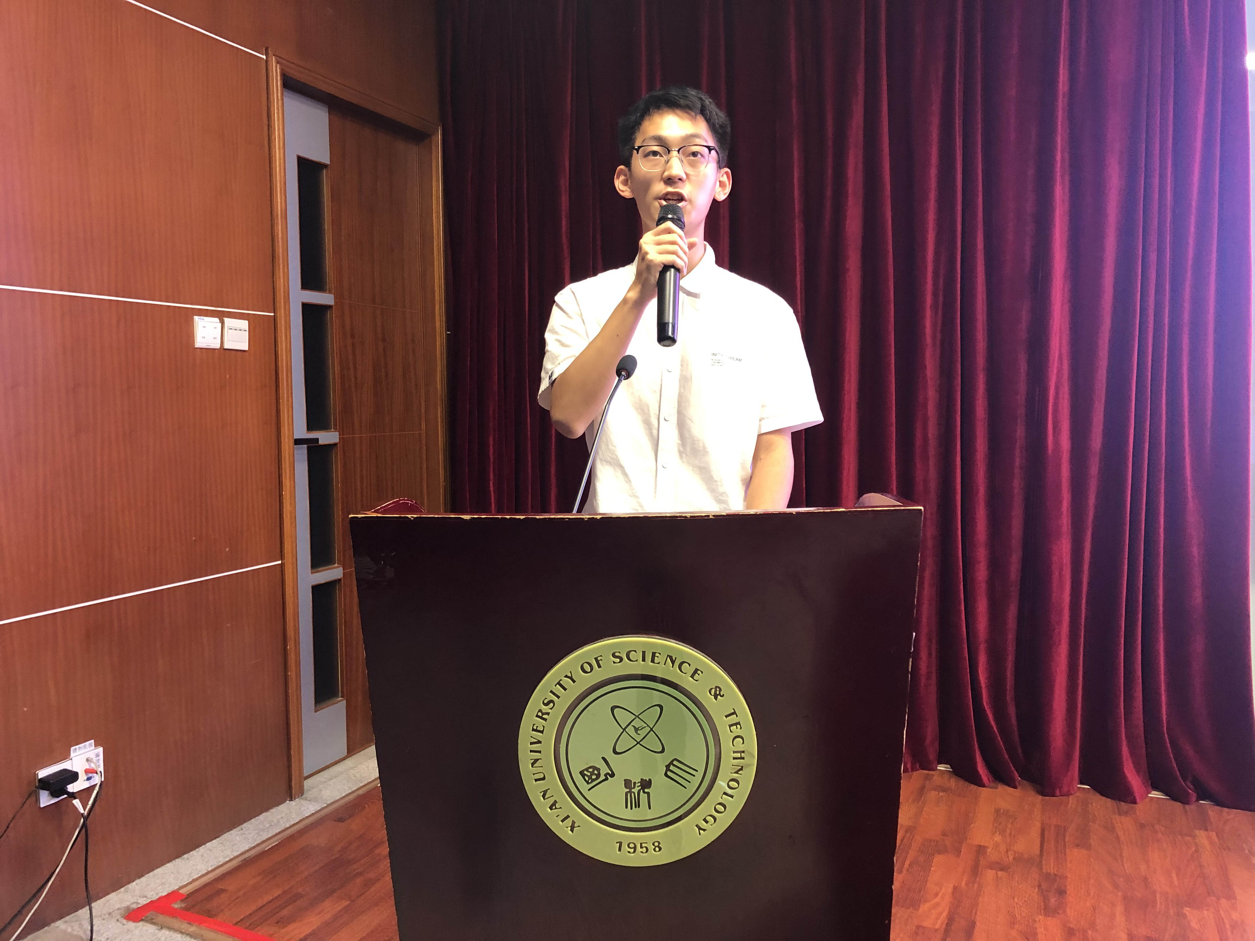 在校生代表、2018级地下水科学与工程专业王焜湘同学在发言中分享了自己大学期间的学习生活,鼓励同学们要合理规划、拒绝拖延,踏实走好老员工活每一步。