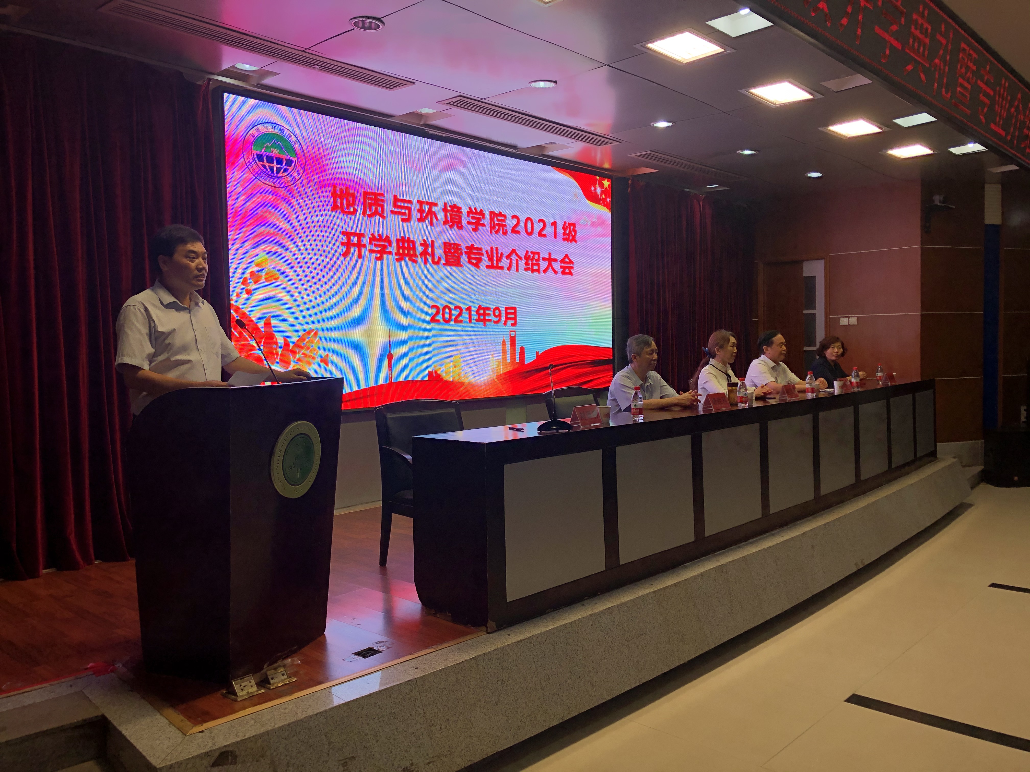 教师代表、资源勘查系主任陈应涛向新同学们表达了欢迎和问候,为同学们勾勒了美好的校园生活,鼓励大家要积极主动学习,在知识的获取和人格的塑造中造就独一无二的自我。