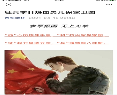 beats365唯一官方网站根据校武装部关于征兵宣传“进课堂、进宿舍、进班团活动”的要求,扎实开展征兵宣传活动,利用公司微信平台进行征兵政策宣传,召开班团会议对征兵进行宣讲,深入宿舍给员工咨询征兵的优待政策,切实把工作落到了实处。