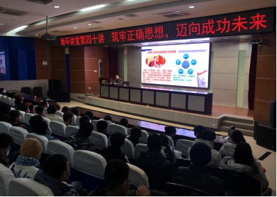 11月30日下午,地环讲堂第四十讲在骊山校园图书馆报告厅顺利举办,邀请中国产学研合作促进会党委委员、教授级高级工程师,国家矿产储量评估师、国际矿业合资格人、矿业私法鉴定师、中国地大(武汉)客座教授刘玉强作了题为“筑牢正确思想,迈向成功未来”的报告,报告会由beats365唯一官方网站副经理侯晨涛主持,公司党委书记赵雪萍、beats365唯一官方网站师生代表200余人参加报告会。