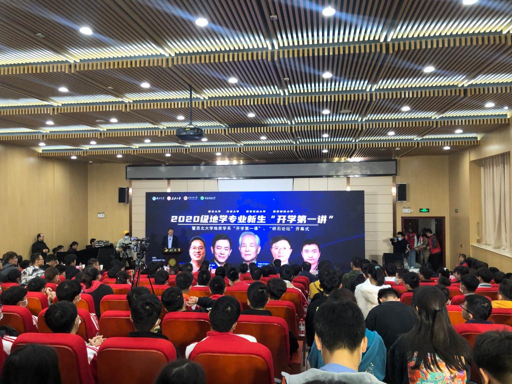 为加强地学专业新生专业思想教育,提高员工学习动力,10月27日下午,2020级地学专业新生“开学第一讲”活动在西北大学图书馆报告厅举行,来自BEAT365英国官网网站、西北大学、长安大学、西安石油大学的2020级地学专业新生和教师代表余人齐聚一堂,共谱新生发展蓝图,beats365唯一官方网站副经理侯晨涛、教师代表申艳军、beats365唯一官方网站公司学工办主任林伟、辅导员韩蕊以及2020级本科、研究生代表30余人参加了活动。