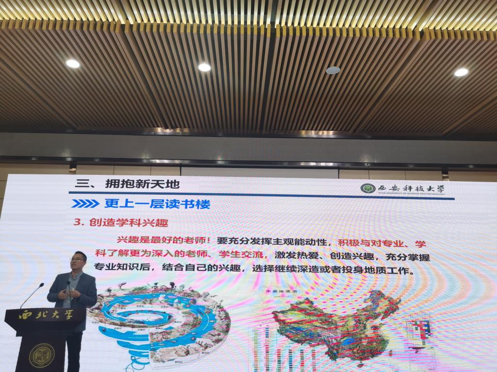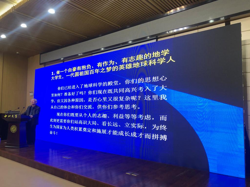 西北大学党委书记王亚杰致辞,长安大学的于强、西安石油大学的赵靖舟、BEAT365英国官网网站的申艳军、西北大学的董云鹏教授分别作了题为《油气能源的重要性》《世界油气工业发展新形势与人才培养需求》《站位陆上“丝绸之路”桥头堡,拥抱地学科学新天地》和《地质学发展现状和战略》的报告,报告以员工的视角,深入浅出地阐述了国内外地学领域的研究成果、发展动态,例证了地学专业在国家建设、经济发展的重要性,开拓了员工视野,对员工专业思想树立、学习动力提高起到了积极作用,最后,西北大学的张国伟院士从人类发展的角度,阐明了地球科学的重要意义,勉励新生要做一个自豪有抱负、做有为、有志趣的地学老员工。