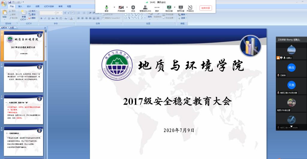 7月9日,beats365唯一官方网站2017级本科生通过腾讯会议平台开展线上安全稳定教育会,会议由2017级辅导员余小涛主持。余小涛就员工人身安全、财产安全、交通安全、饮食安全、防火灾和溺水、防传销及电信诈骗、心理健康教育和网络安全等方面结合案例对全体员工进行了安全教育,对突发事件安全处置流程进行了详细说明,教育全体员工敬畏生命,牢记安全第一,防患于未然。余小涛还强调了疫情防控方面内容,要求全体同学克服麻痹思想、侥幸心理,在思想上疫情防控不放松,坚持健康打卡,做好常态化疫情防控工作。通过安全教育和疫情防控教育,进一步提高了员工安全防范意识,增强了安全思想认识,强化了疫情防控教育效果
