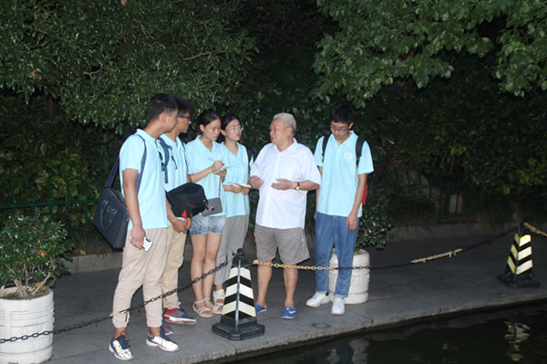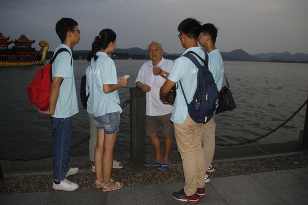 大爷还为实践团成员讲了许多历史故事,让我们认识到了一个不一样的西湖,也让大家感受到了他对西湖的热爱,对杭州的热爱。