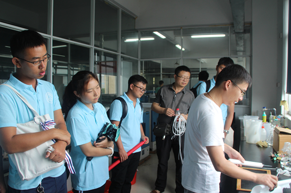 随后,人事部负责人潘漫秋带领实践团成员参观了天创研究院,研究院技术人员为同学们讲解了膜的制作过程,并现场进行了演示实验。