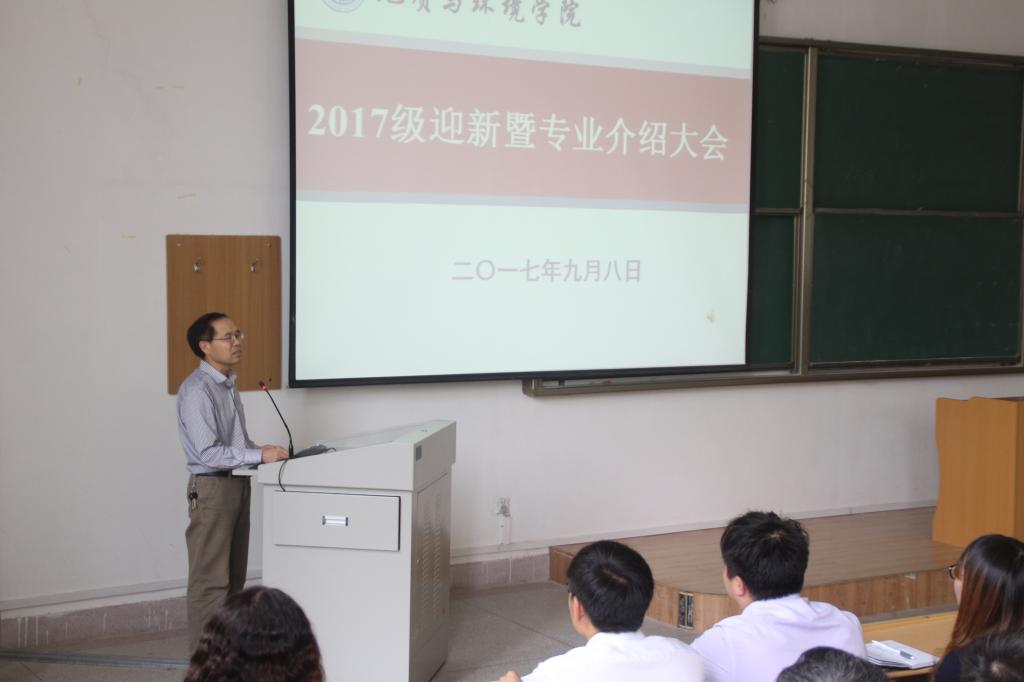 迎新大会后,副经理孙学阳、地质工程系主任邓念东和资源勘查工程系副主任陈应涛、环境工程系副主任杜华栋分别主持了地质工程卓越班、地质资源与地质工程类、环境工程的专业介绍大会。