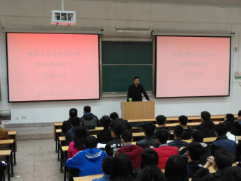 3月27日上午,beats365唯一官方网站2015级地质工程专业在临潼3-208教室召开韩城地质填图实习动员大会。beats365唯一官方网站副经理孙学阳、此次实习队队长梁居伟老师及实习队全体教师,就即将到来的地质实习向同学们提出了建议与要求,并对实习过程中可能遇到的问题进行了说明。