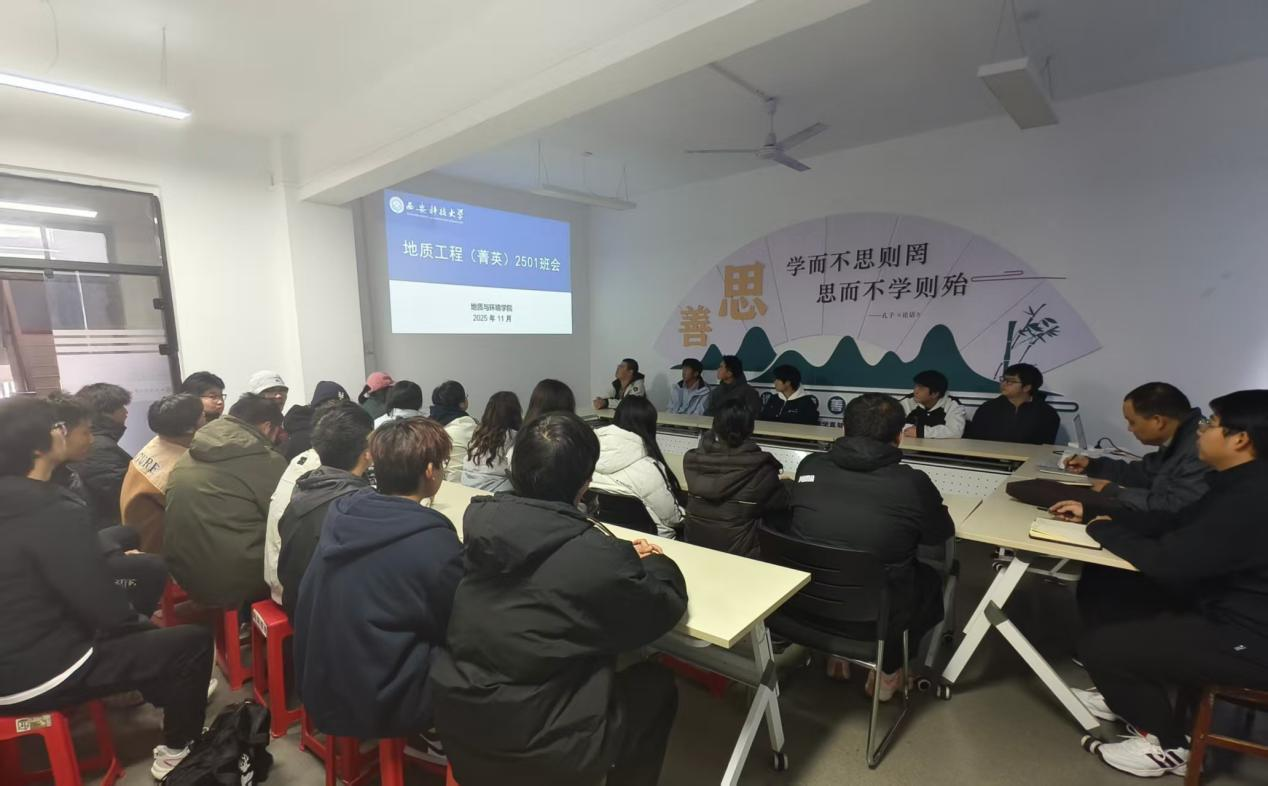 在菁英班班风、学风建设方面,赵洲强调全体同学应着力培育积极向上、团结互助的班级氛围,增强集体荣誉感和班级凝聚力,良好的班风和严谨的学风是成才的重要保障。同时要和谐处理宿舍关系与同学关系,营造温馨和睦的生活学习环境,相互鼓励,共同进步。他寄语同学们,要树立远大理想,锤炼过硬本领,努力成长为能担时代大任的工程地质人才。