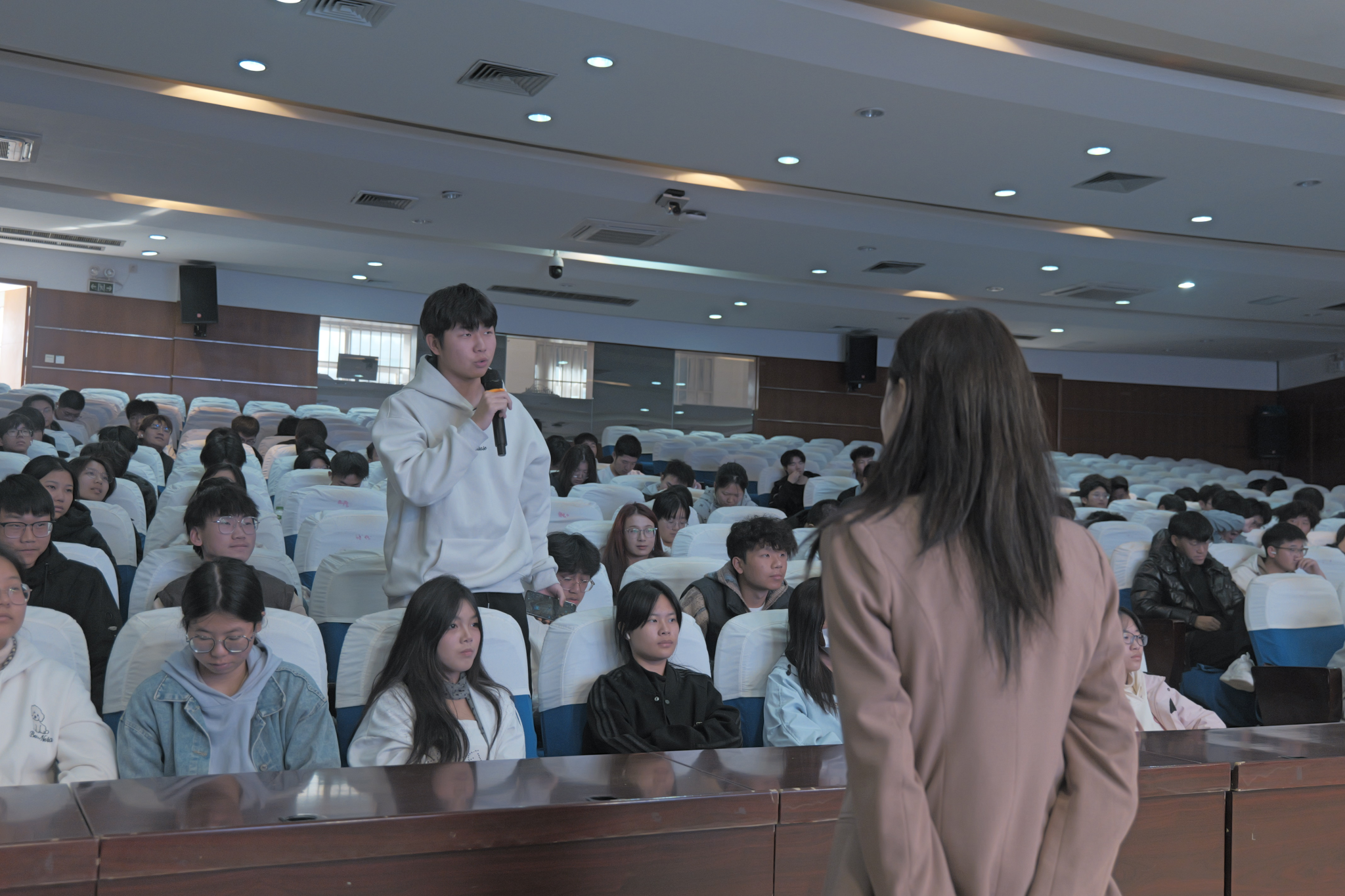 讲座现场互动氛围热烈。陈子田抛出“好朋友心情不好,你会如何安慰?”“和老师一起乘坐电梯,你应该先进还是让老师先进?”等贴近生活的问题,以问答互动形式引导新生深度思考。同学们踊跃举手回应,结合自身经历分享感悟,现场掌声不断,有效调动了大家的学习积极性,让礼仪知识在互动中深入人心。