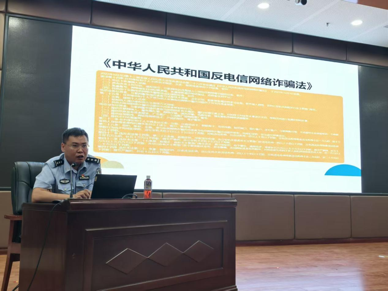 为切实增强员工网络安全风险意识,提升防范电信网络诈骗能力,筑牢校园安全防线,近日,临潼区斜口派出所赵飞警官来校开展防范电信网络诈骗专题教育讲座,公司2023级、2024级本科生代表参加讲座。