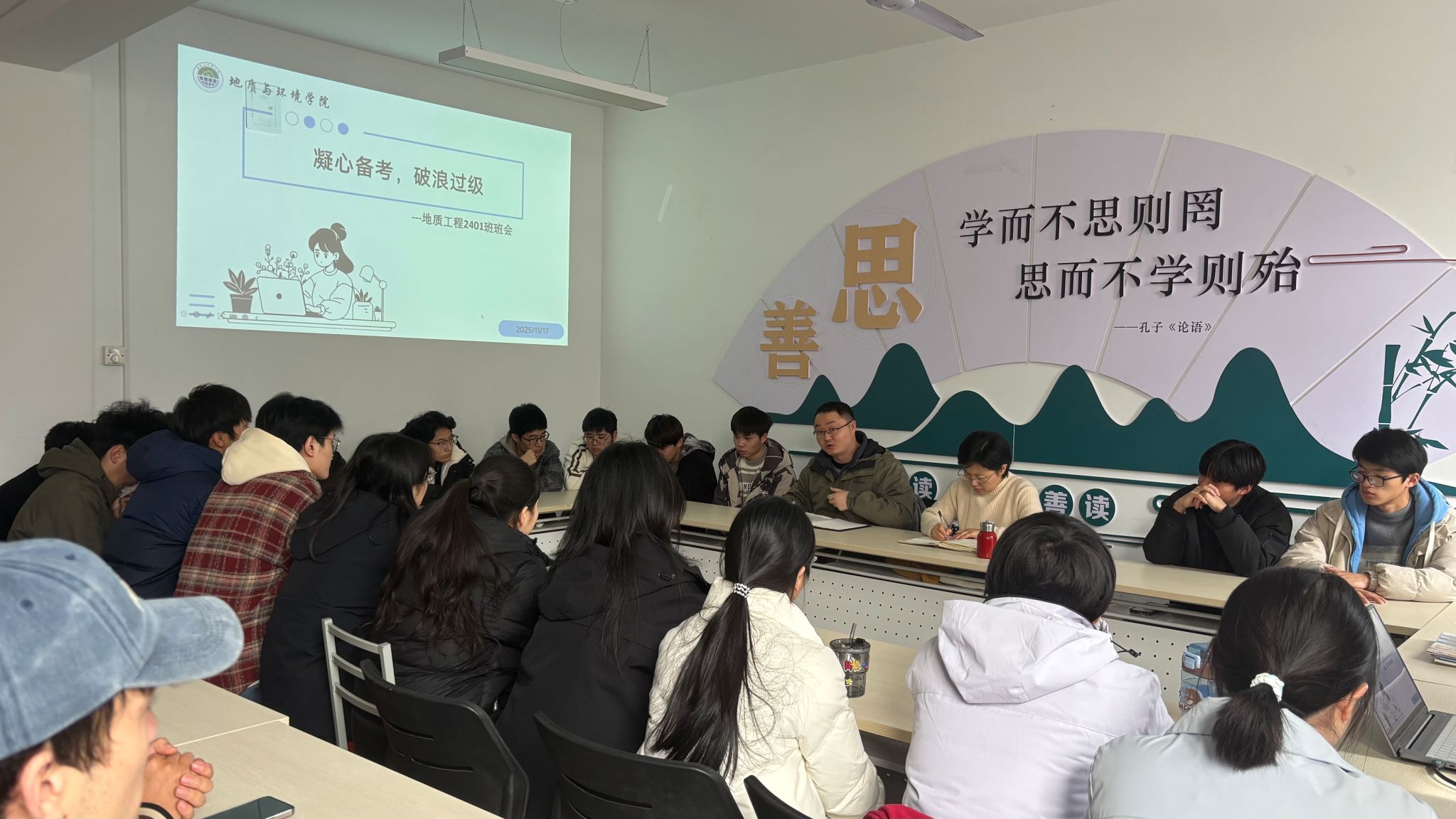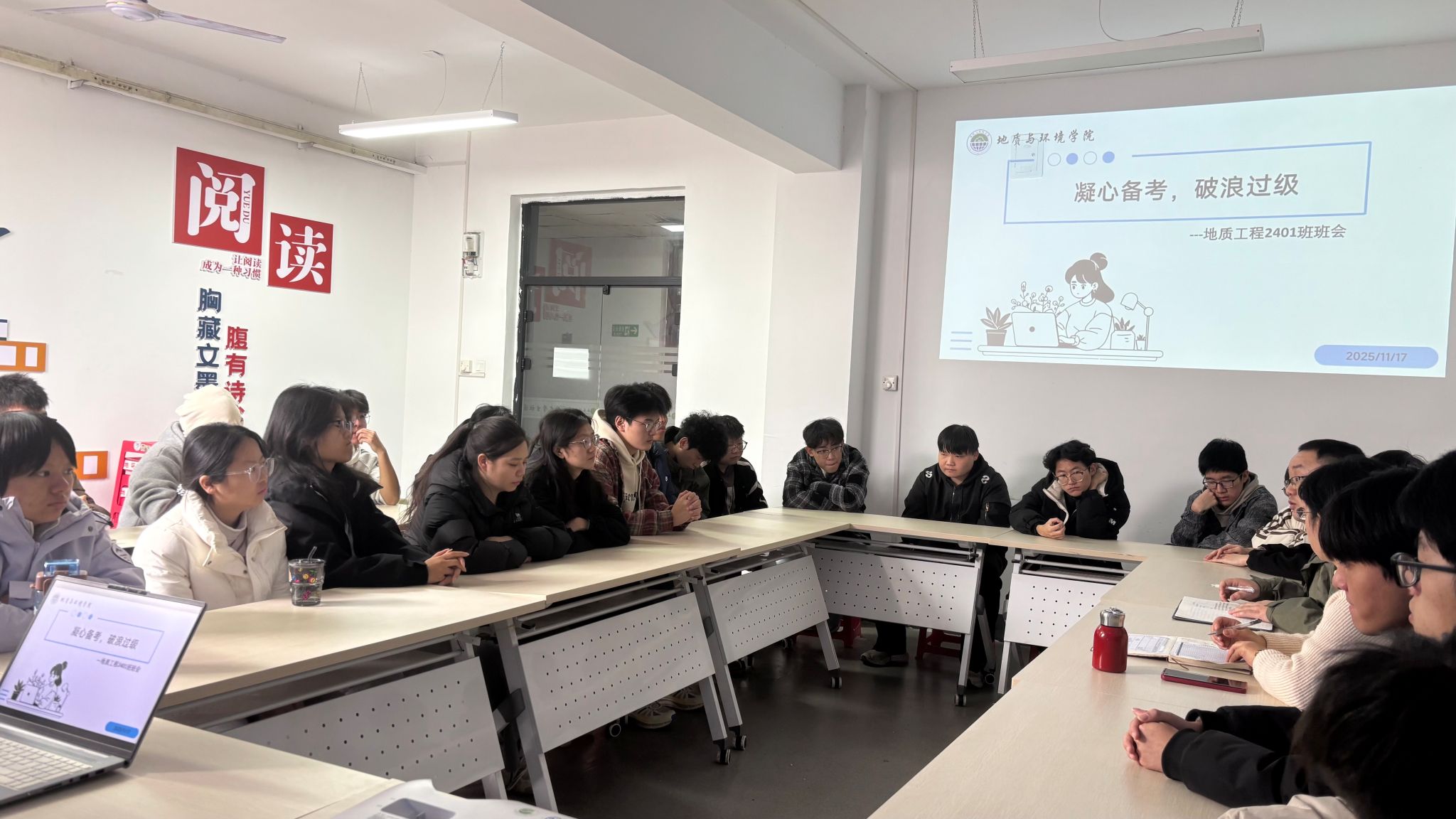 为帮助同学们高效备战英语四级考试,明确备考方向、掌握实用技巧,11月17日,地质工程2401班在“一站式”员工社区召开“凝心备考,破浪过级”主题班会。班主任李仁伟主持,辅导员李琳及全体同学参会。