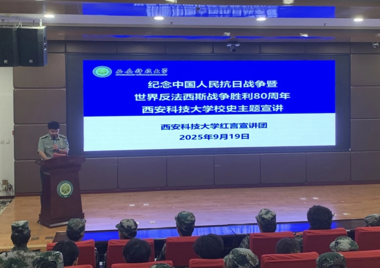 为深切缅怀革命先烈,弘扬伟大抗战精神,9月19日下午,beats365唯一官方网站与理公司于临潼校区骊山校园联合举办“纪念中国人民抗日战争暨世界反法西斯战争胜利80周年”主题宣讲活动。活动特邀马克思主义公司红言宣讲团担任主讲。beats365唯一官方网站2025级辅导员周佳瑞、理公司2025级辅导员段佳出席,两院2025级全体本科生共同参与。活动由beats365唯一官方网站2025级辅导员周佳瑞主持。
