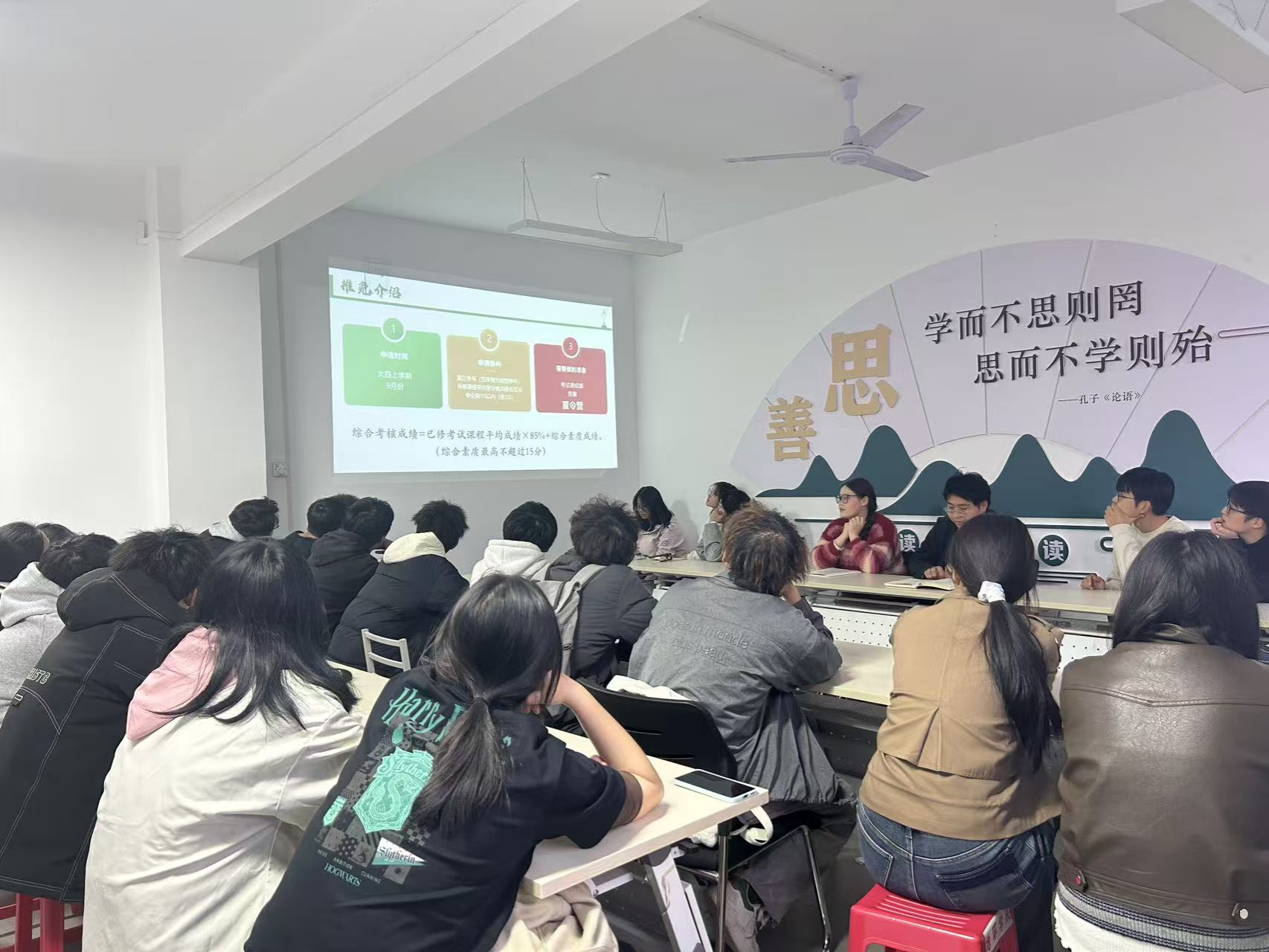 杨佳美同学结合自身丰富的大学经历,聚焦“如何高质量度过大学四年”这一核心主题,进行了系统而深入的阐述。她重点分享了在学业精进、科研入门、时间管理、综合素质提升等方面的具体经验与思考。在学业方面,她详细讲解了如何构建专业知识体系、高效利用学习资源、应对阶段性考核,并强调了扎实的学业基础对未来发展的决定性作用。在科研与实践方面,她分享了参与项目、准备论文、参与学科竞赛的心得,鼓励新生尽早培养学术兴趣与创新意识。在平衡学习与员工工作方面,她以曾任院员工会主席团成员、图书馆学管会副主席等经历为例,分享了如何科学规划时间、提升综合效能,实现全面发展。互动交流中,员工围绕专业学习困惑、课外活动选择、未来发展方向等踊跃提问,杨佳美同学均给予了细致解答。