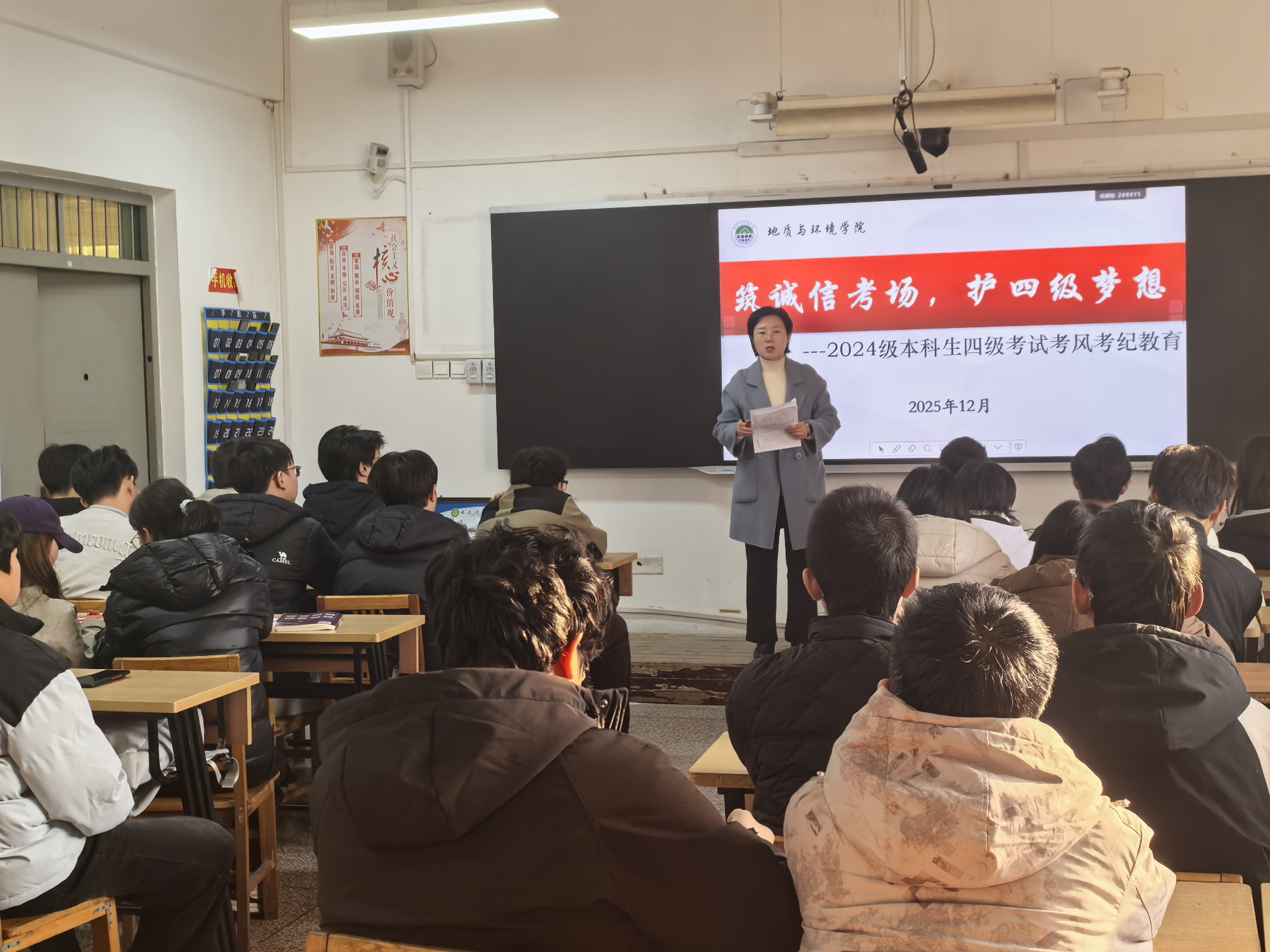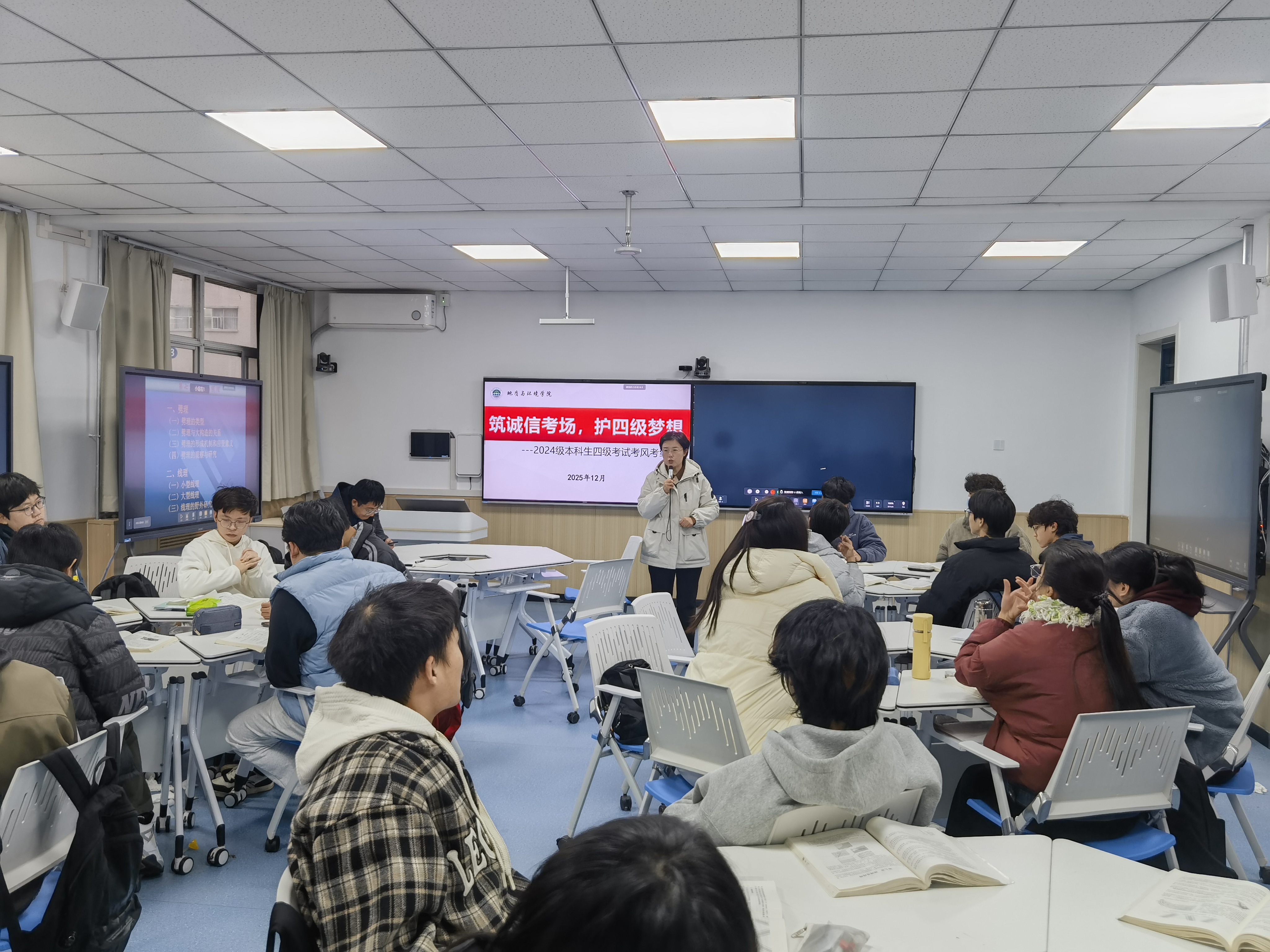 此次四级考风考纪专题教育,既为同学们厘清了考试规范、强化了诚信意识,也为冲刺阶段的备考注入了信心与动力。同学们纷纷表示,将牢记纪律要求,以诚信应考为准则,凭借平日积累的扎实学识和沉稳从容的良好心态,全力以赴迎接四级考试,力争交出满意答卷。