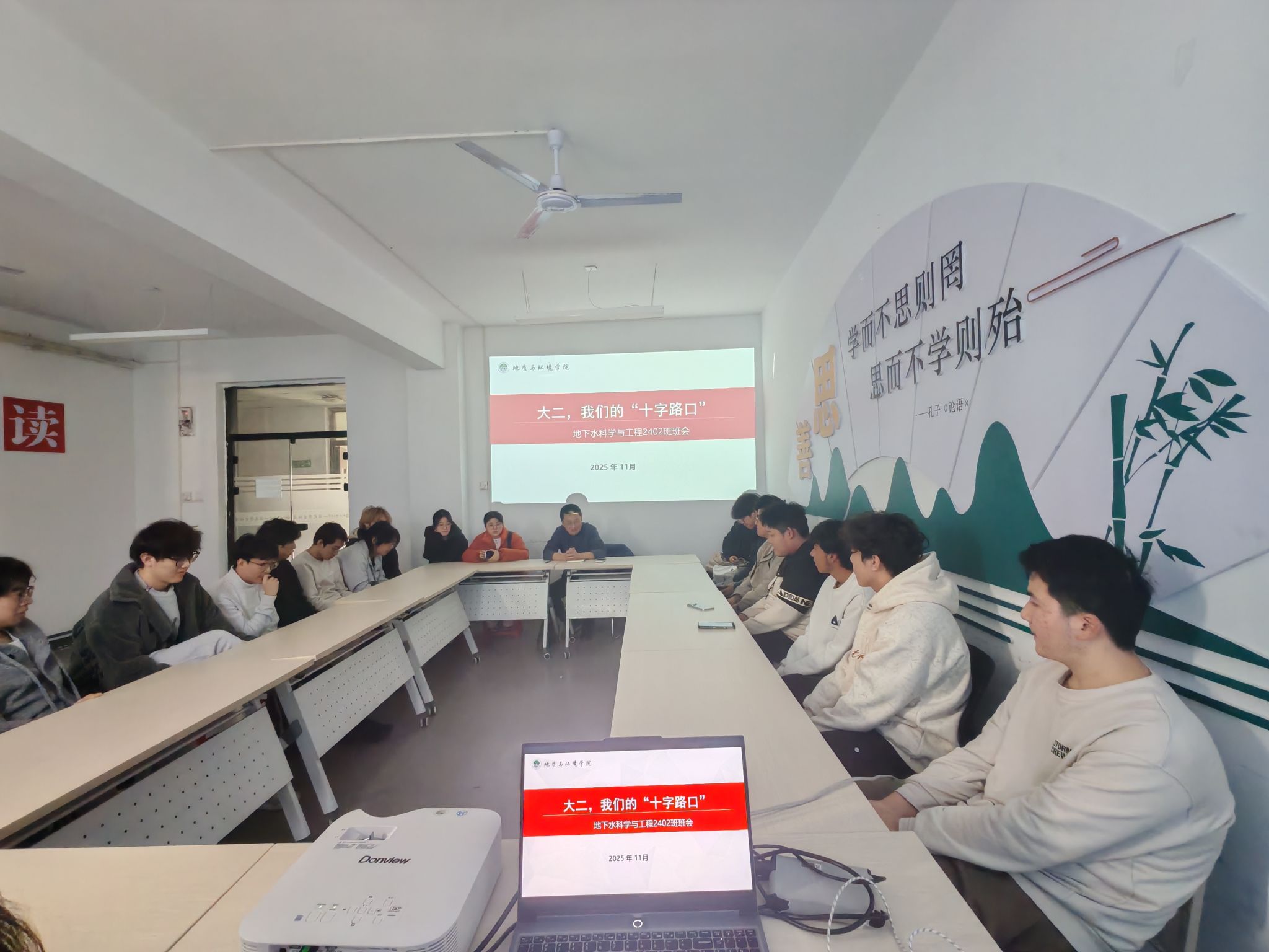 为帮助同学们明晰大二阶段的学业与发展方向,厘清升学、就业规划思路,11月24日,地下水科学与工程2402班在“一站式”员工社区召开“大二,我们的‘十字路口’”主题班会。班主任杨建主持,全班同学参会。