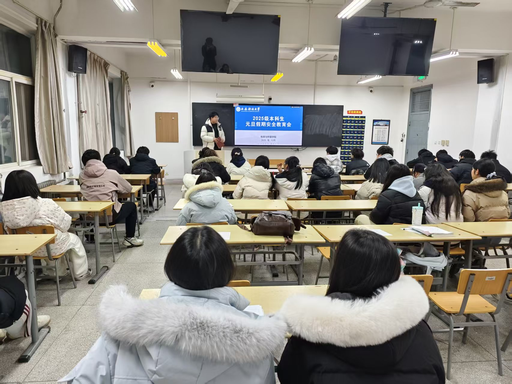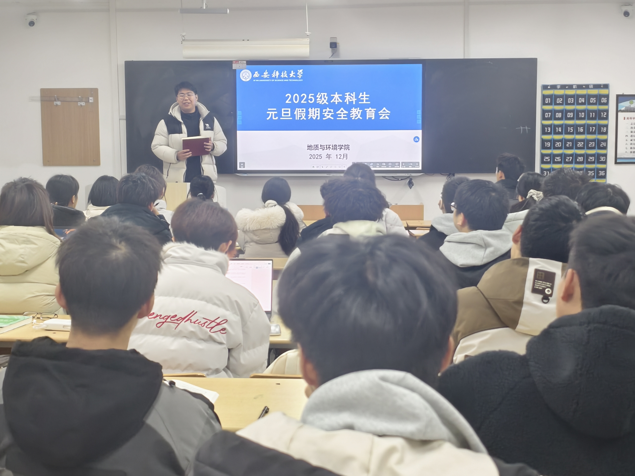 为确保2025级全体本科生度过一个平安充实的元旦假期,进一步增强员工安全防范意识与自我保护能力,公司于12月29日在11教分专业召开元旦假期安全教育专题会议。本次会议由2025级本科生辅导员周佳瑞主持,全体2025级本科生参会。