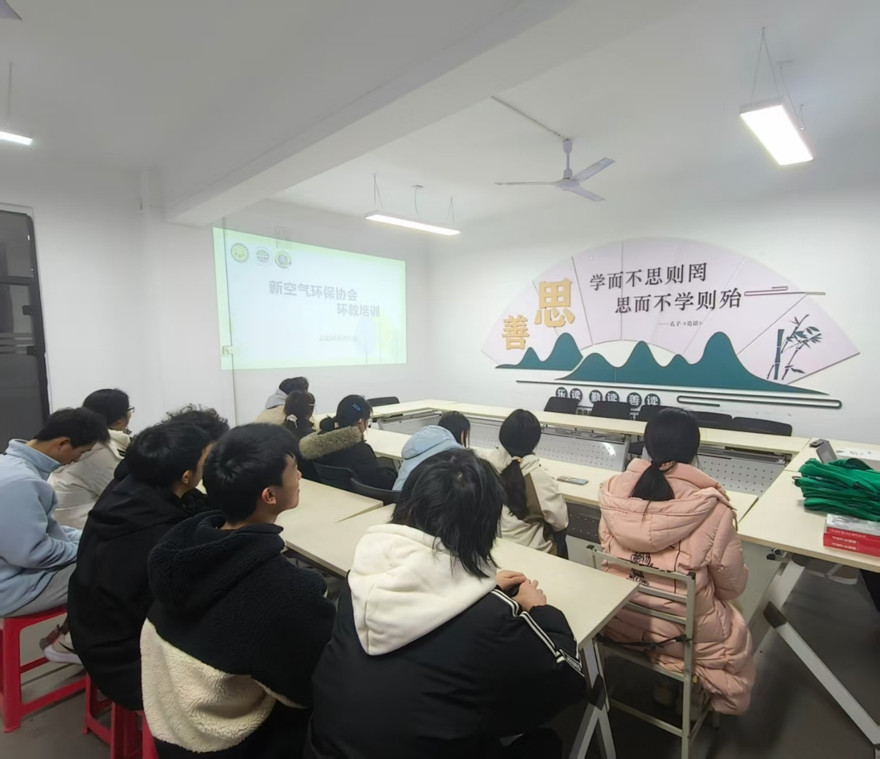 互动问答环节点燃现场氛围,同学们踊跃作答,主动分享随手关灯、自带环保餐具等生活环保妙招。交流互动让培训内容更丰富,也让环保理念深入人心。