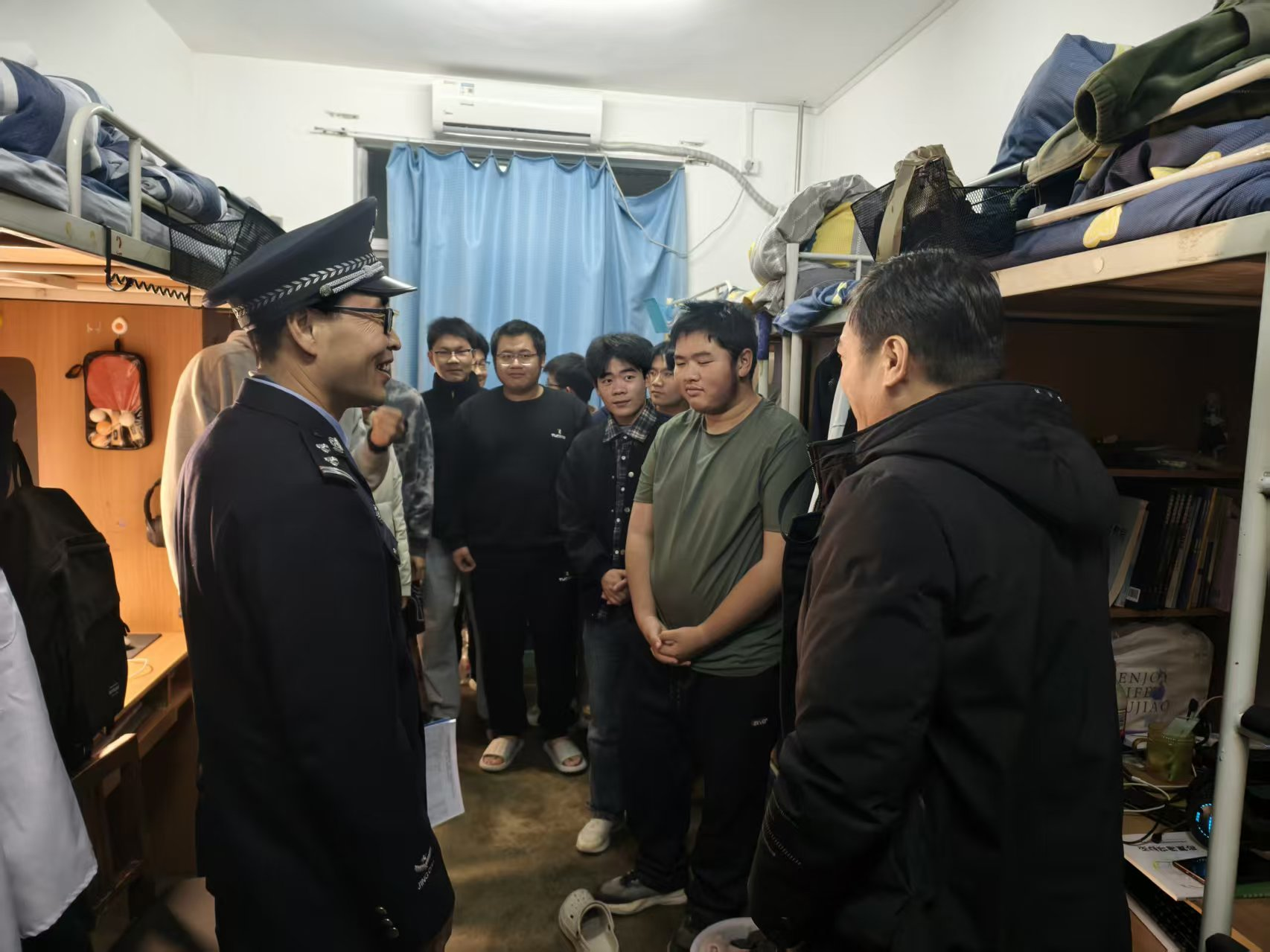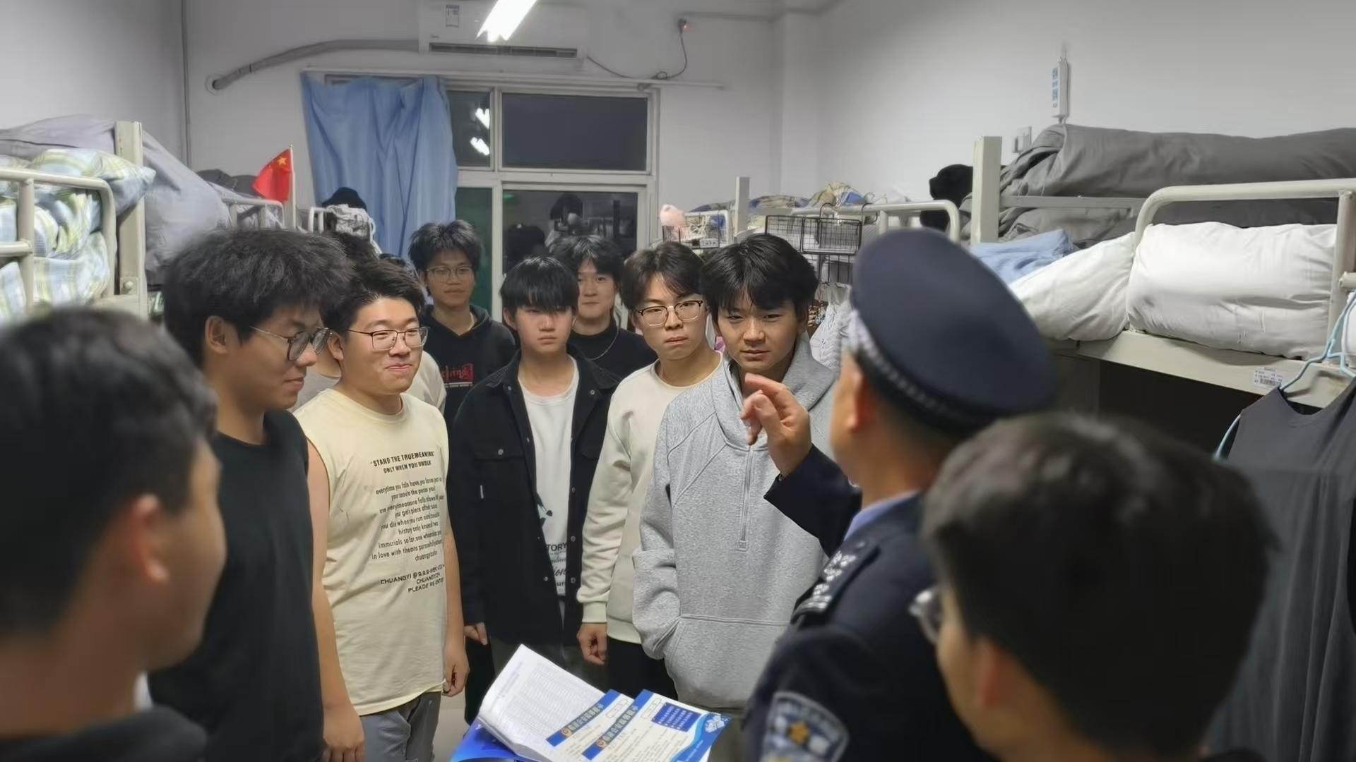活动第二阶段,公司党委副书记刘训明、全体辅导员与民警一同深入员工宿舍,开展“一站式”社区面对面反诈宣传。他们走进员工中间,亲切询问同学们日常网络消费、社交软件使用等情况,结合不同年级员工的生活学习特点进行针对性提醒,告诫大家务必警惕不明链接、虚假兼职广告、冒充熟人借款等常见陷阱。宣传人员还现场发放了反诈宣传单,并耐心指导同学们下载、注册和正确使用“国家反诈中心”APP,详细讲解其来电预警、风险查询、线索举报等实用功能,确保反诈工具落到实处、发挥实效。