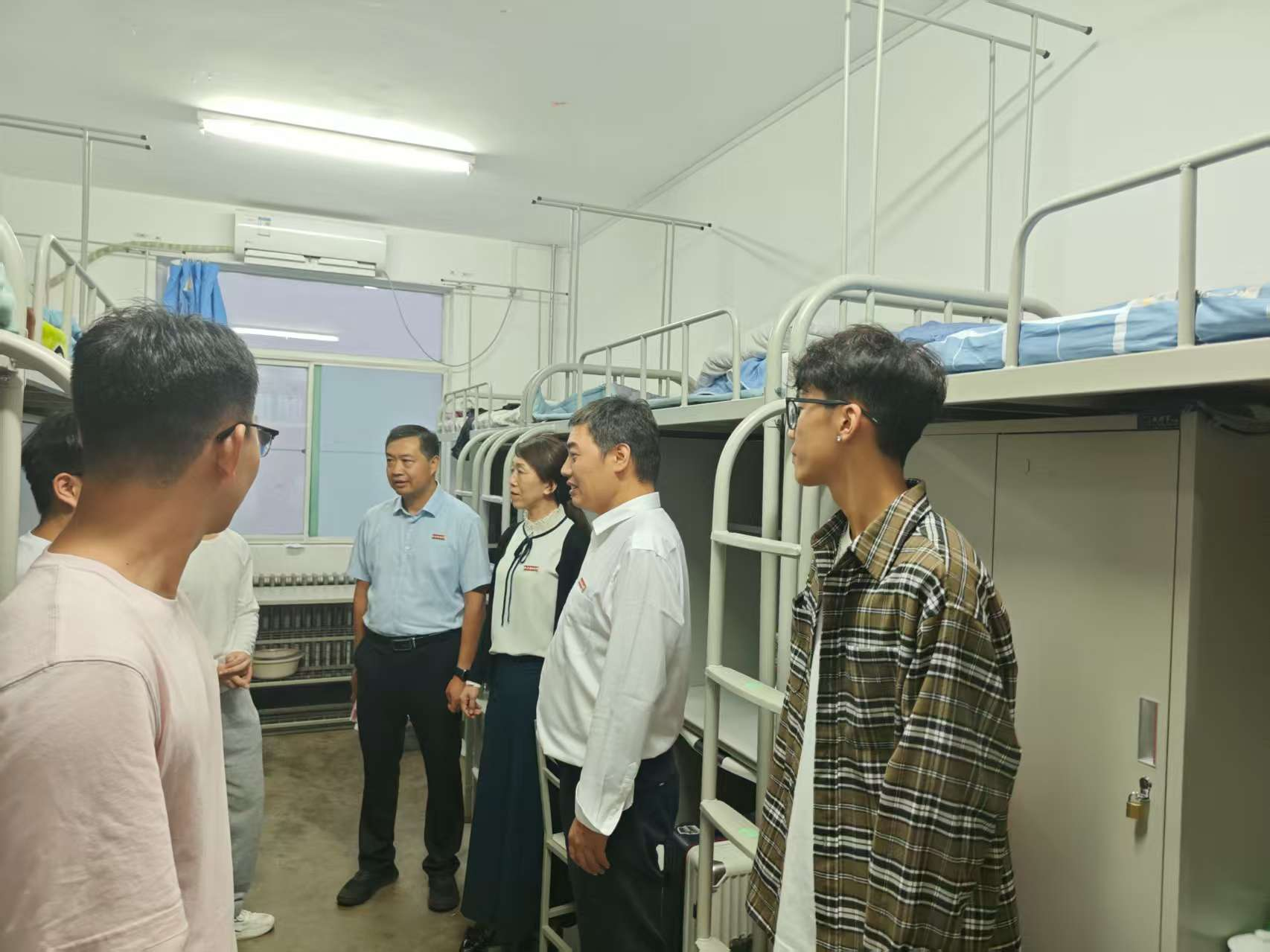 走访过程中,公司领导与老师们对新同学的到来表示热烈欢迎,并与大家亲切交流。细致询问了同学们的家乡籍贯、入校感受及生活适应情况,并实地查看了宿舍环境与安全设施。赵雪萍在交谈中指出,同学们从各地汇聚于此,应珍惜同窗之谊与共宿之缘,注重培养集体意识与协作精神,共同营造整洁文明、和谐奋进的寝室文化氛围,为个人成长奠定良好环境基础。