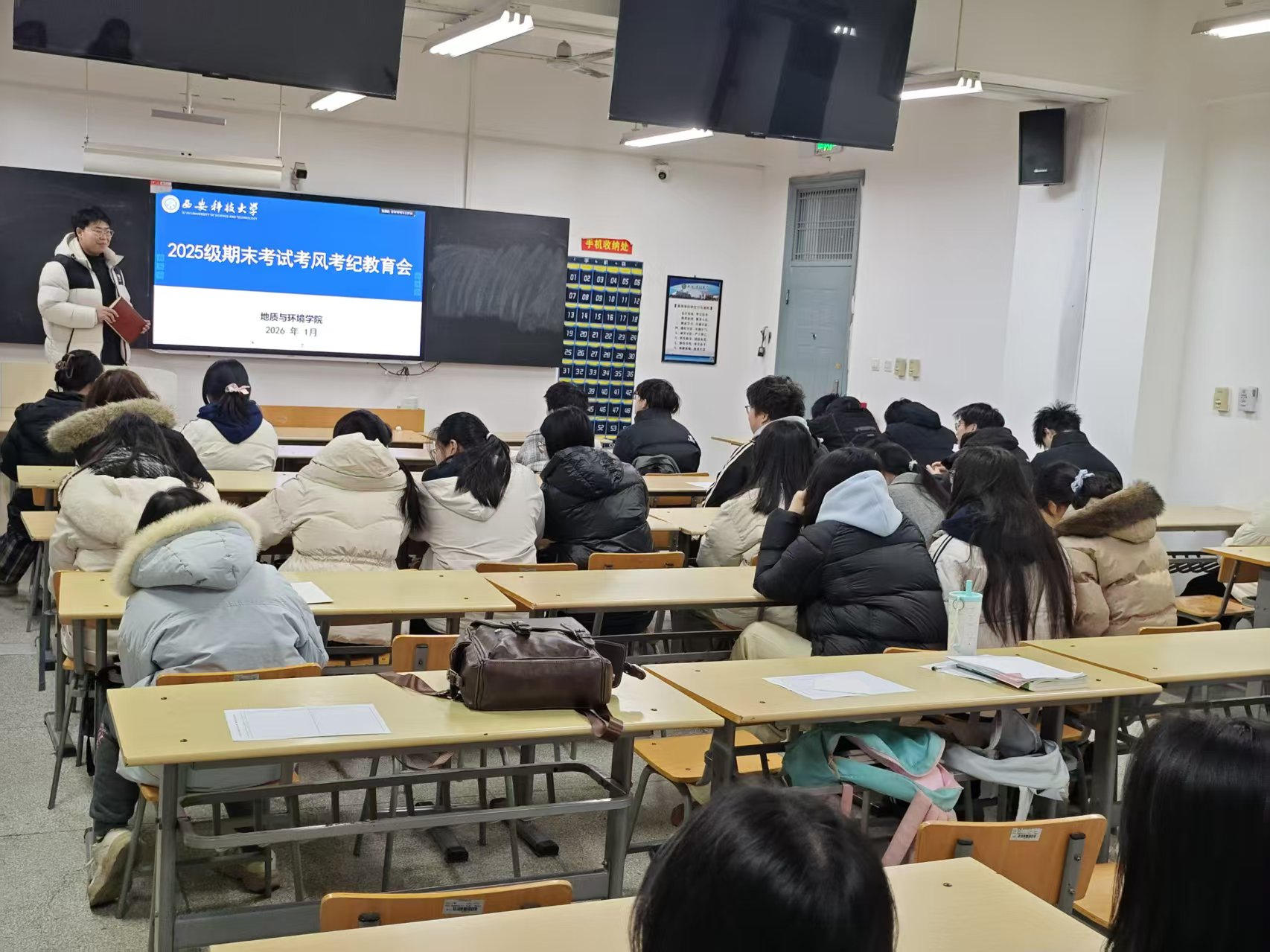 为加强学风建设,严肃考风考纪,营造公平、公正、诚信的考试氛围,确保2025-2026学年第一学期期末考试工作顺利进行,2026年1月4日,公司组织召开2025级本科生期末考试考风考纪专题教育大会。会议由公司2025级本科生辅导员周佳瑞主持,2025级全体员工参加。