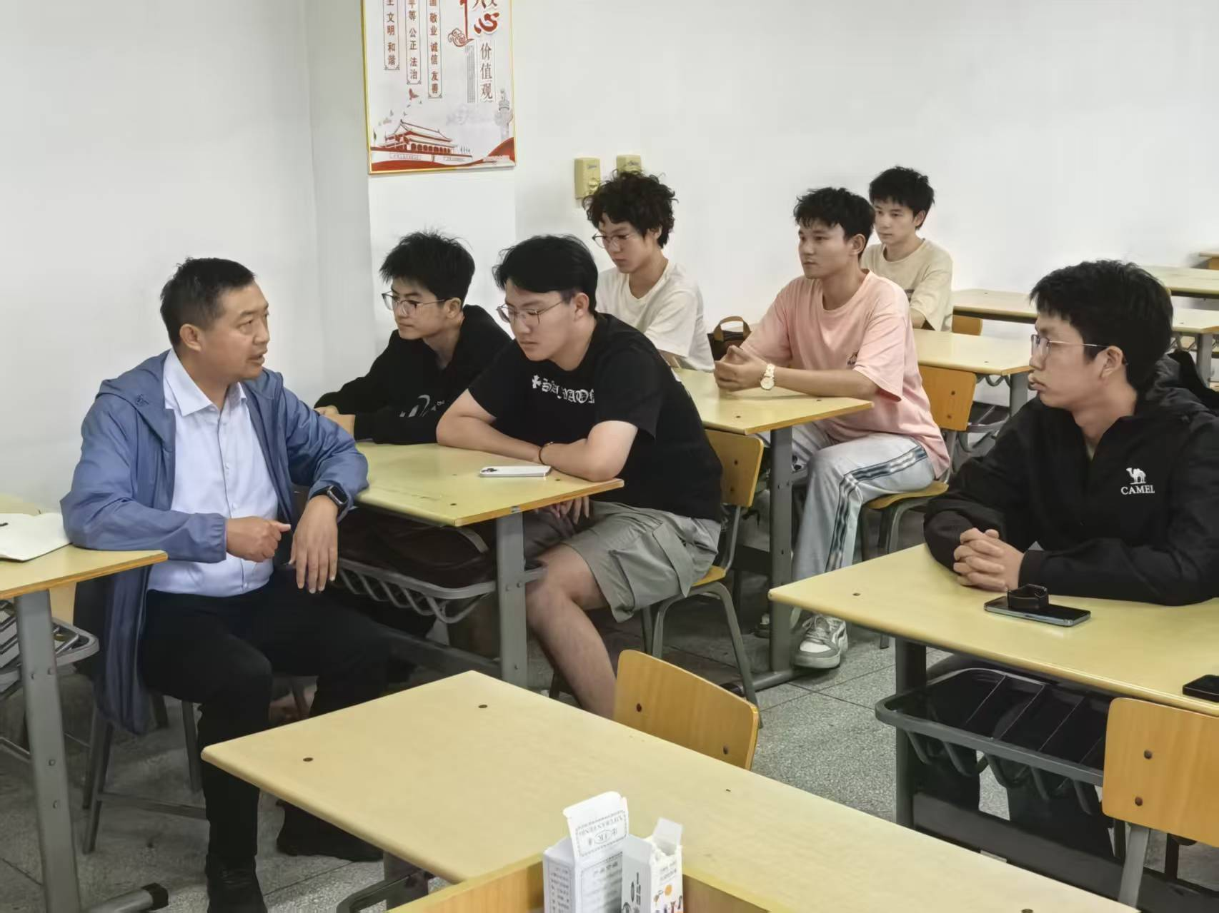 唐建州老师补充专硕与学硕的区别及备考策略,提醒同学们根据职业规划合理选择目标。班会最后,老师们耐心解答疑问,并欢迎同学们报考本院研究生。本次班会内容充实、反响热烈,为同学们明晰发展方向注入动力。