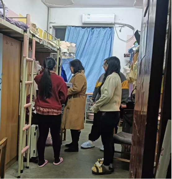 12月2日至3日,公司集中开展员工宿舍安全排查与文明督导专项检查,着力筑牢宿舍安全底线,培育健康向上的宿舍文化。公司党委书记赵雪萍、党委副书记刘训明、辅导员李琳、韩蕊、余小涛、周佳瑞深入一线,走访公司骊山校园所有员工宿舍。