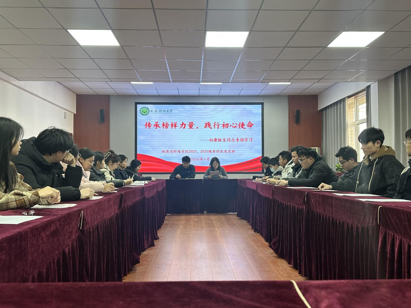 为深入学习康振生同志的先进事迹与科研精神,凝聚青年学子奋进力量,1月15日,公司2023、2025级本科生党支部在11教322会议室开展主题为“传承榜样力量,践行初心使命”的向康振生同志专题学习活动,会议由支部书记韩蕊主持,全体党员参加。