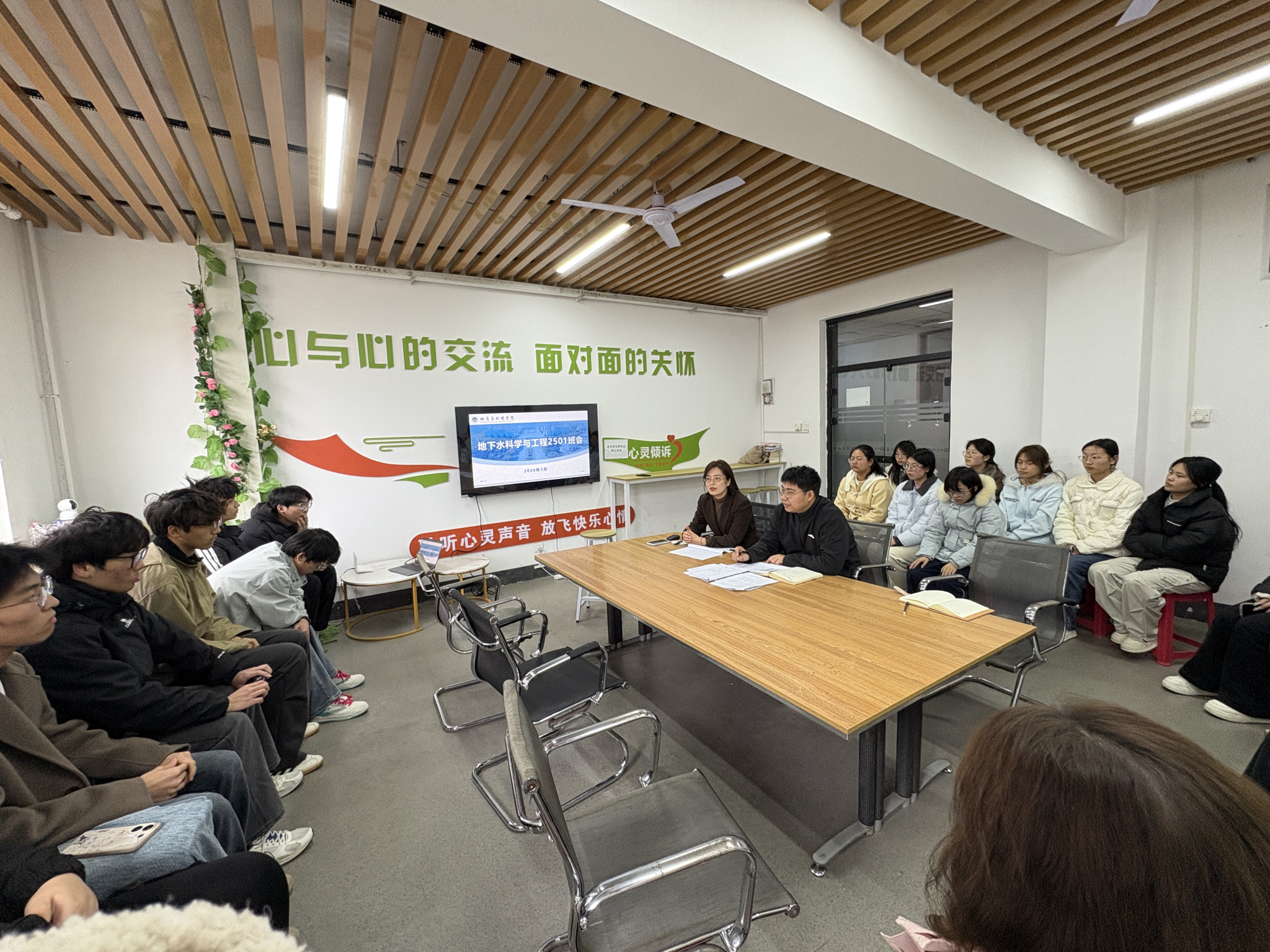 为深入剖析班级学业状况,查找不足、明确方向,3月16日,公司地下水科学与工程2501班在“一站式”员工社区召开学情分析主题班会。2025级辅导员周佳瑞、班主任肖乐乐老师及班级全体同学参加会议。