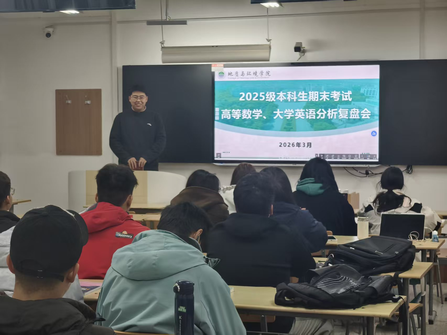 为深入分析公共基础课学业状况,找准教学与管理中的薄弱环节,进一步提升人才培养质量,3月9日,公司在骊山校园11教召开高等数学、大学英语期末考试成绩分析会。本次会议由2025级辅导员周佳瑞主持,2025级全体员工参加会议,会议分专业召开。