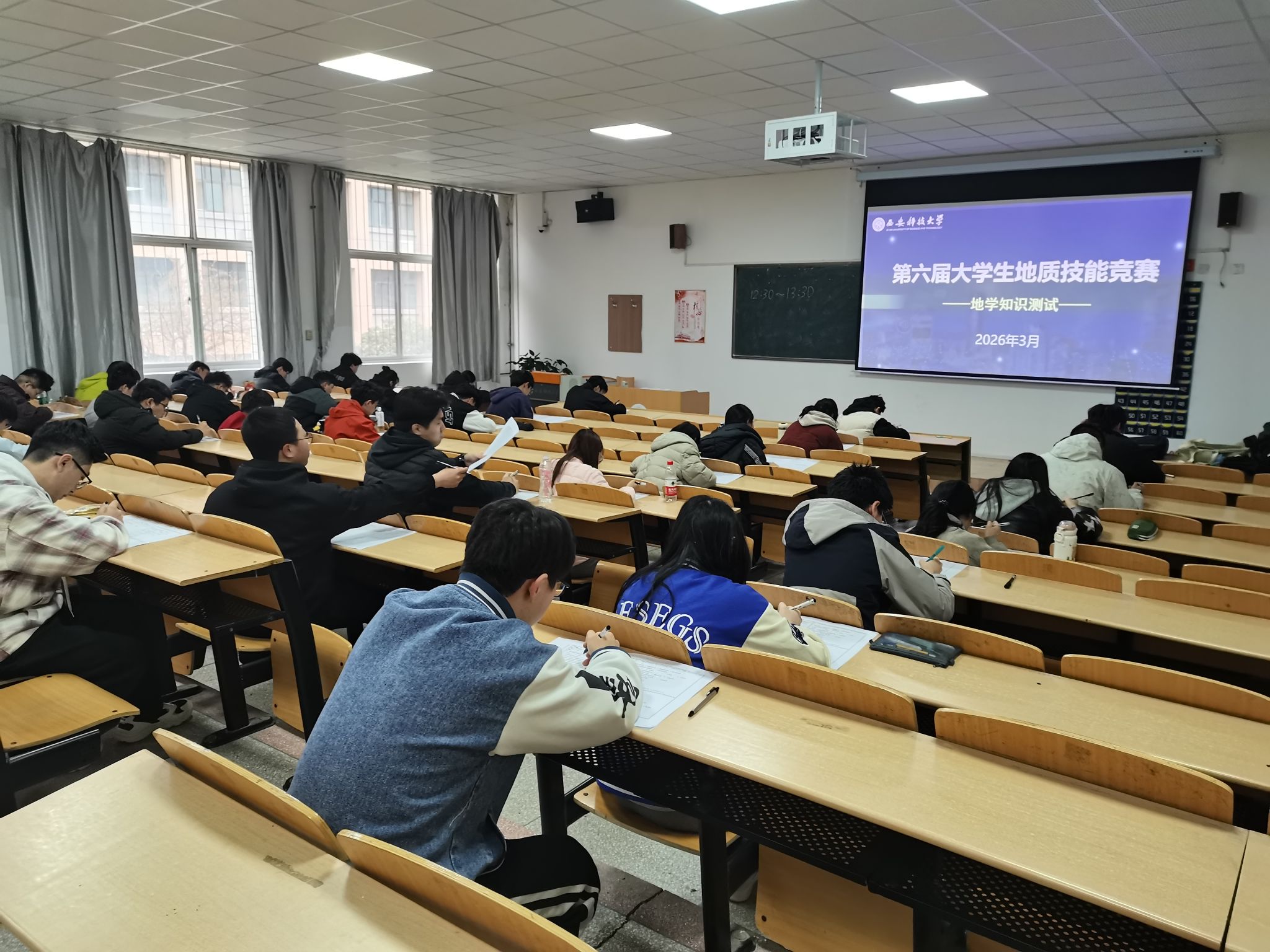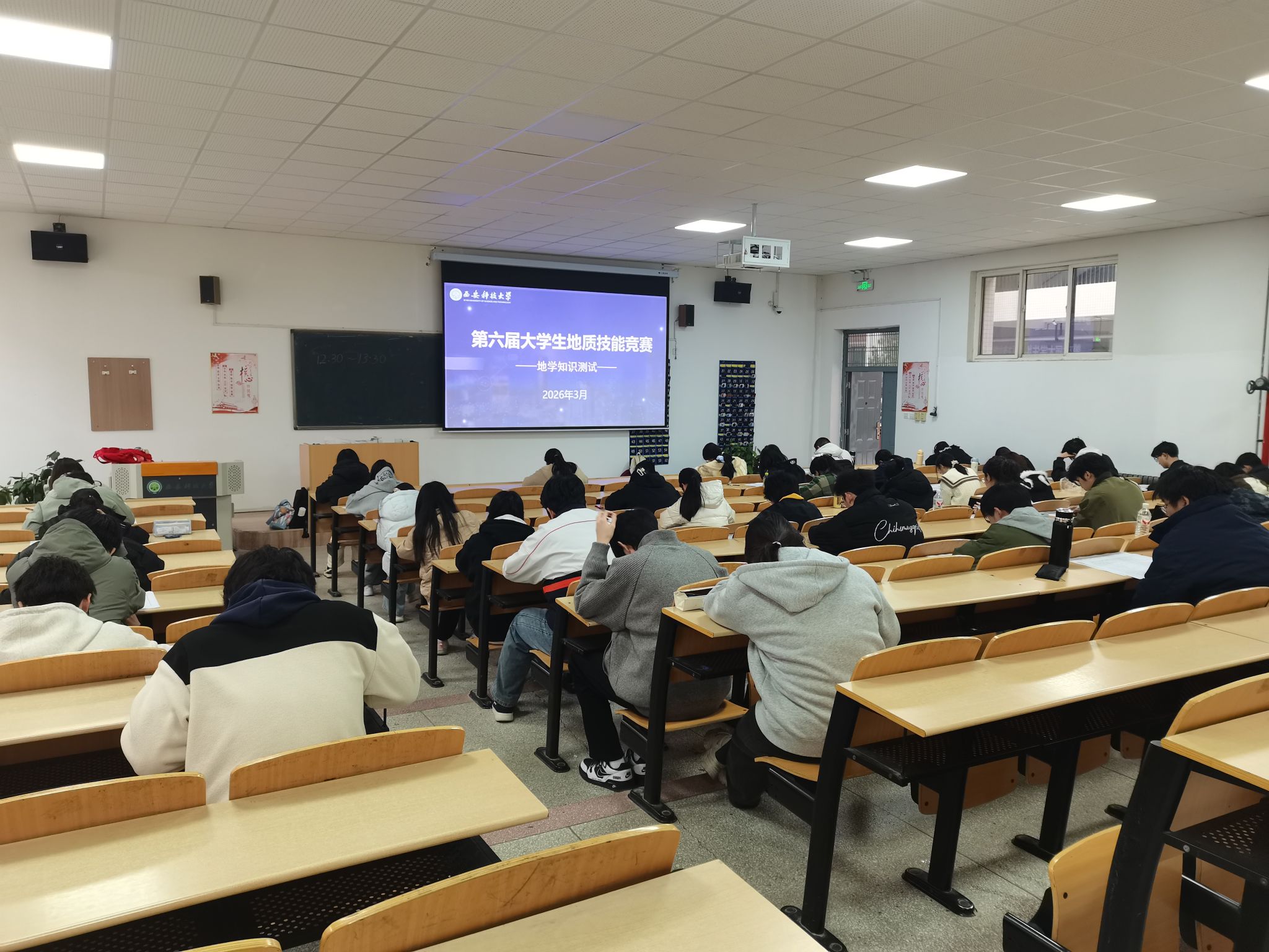 竞赛设两个单元。近日,第一单元地学知识测试在临潼校区骊山校园9号教学楼107、108教室完成,近200名员工参赛。该测试聚焦地学基础与专业技能,旨在检验员工知识掌握程度,引导其灵活运用所学解决实际问题。