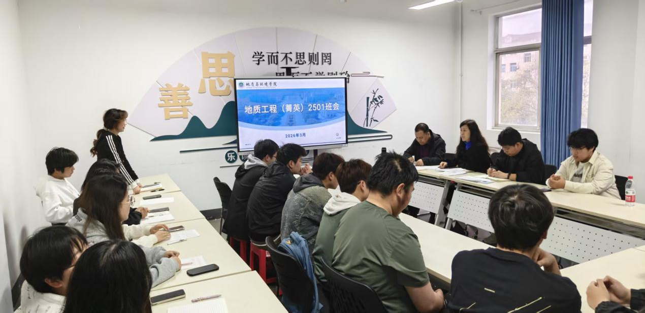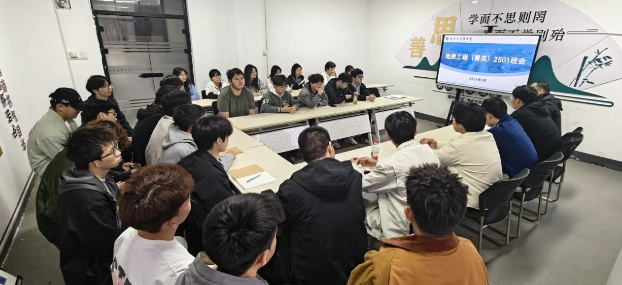 在交流发言环节,班级同学结合上学期个人学习与生活适应情况依次发言,认真总结收获与不足,并就当前学习中遇到的困惑进行交流。同学们提出的问题主要集中在:地质工程专业的就业方向有哪些、考研与就业如何抉择、地质工程未来能从事哪些具体工作、如何在课程节奏紧张的情况下学好基础课程等。针对同学们的疑问,赵洲逐一进行细致解答,并结合2026届毕业生就业和考研的实际情况,对地质工程专业的发展前景、行业需求及升学路径作了全面解读。他勉励同学们立足当下,着眼长远,在学习中主动思考,在实践中加深对专业的认知。