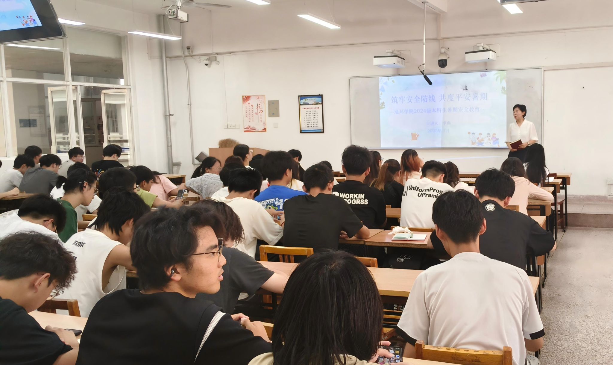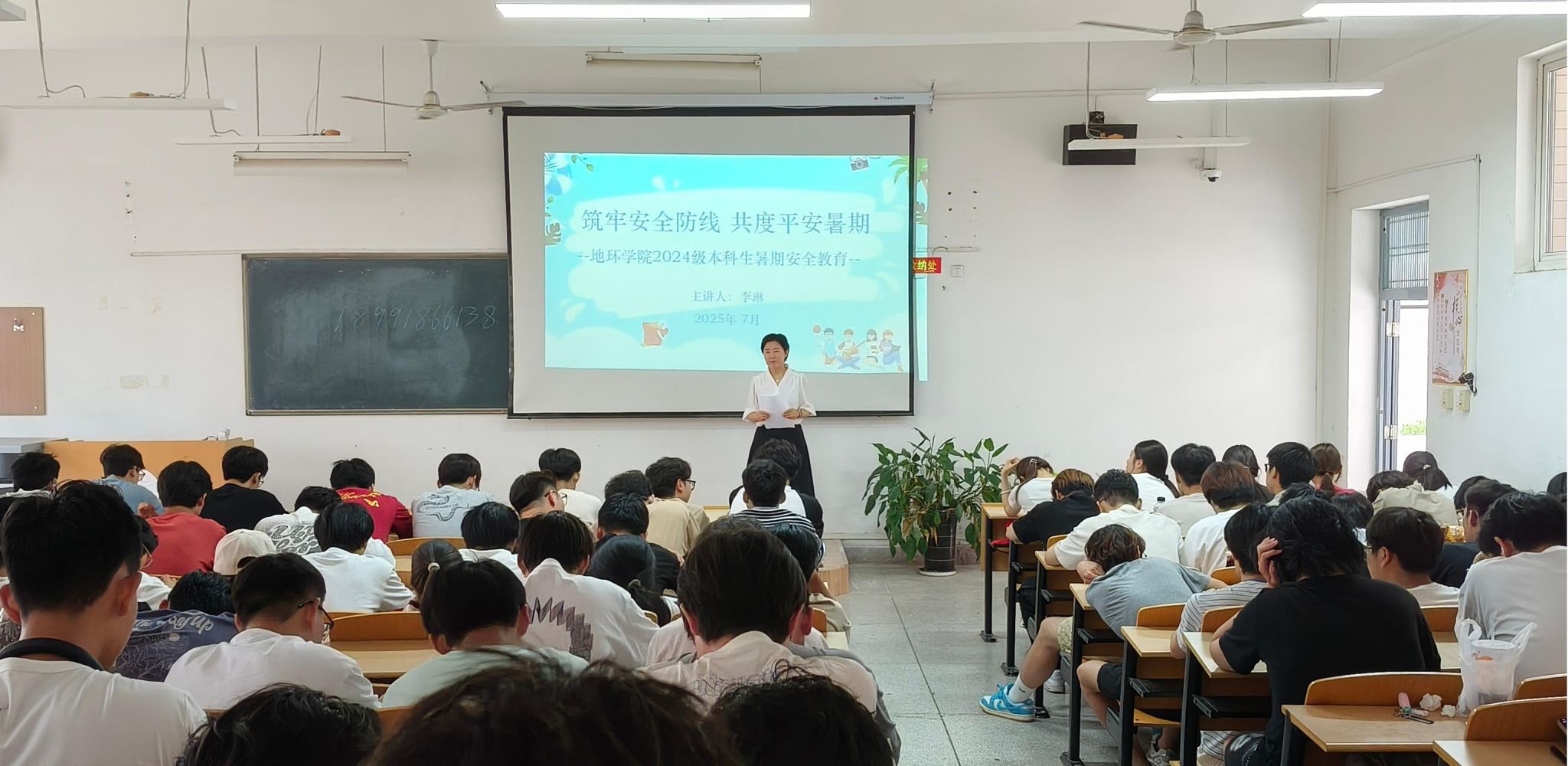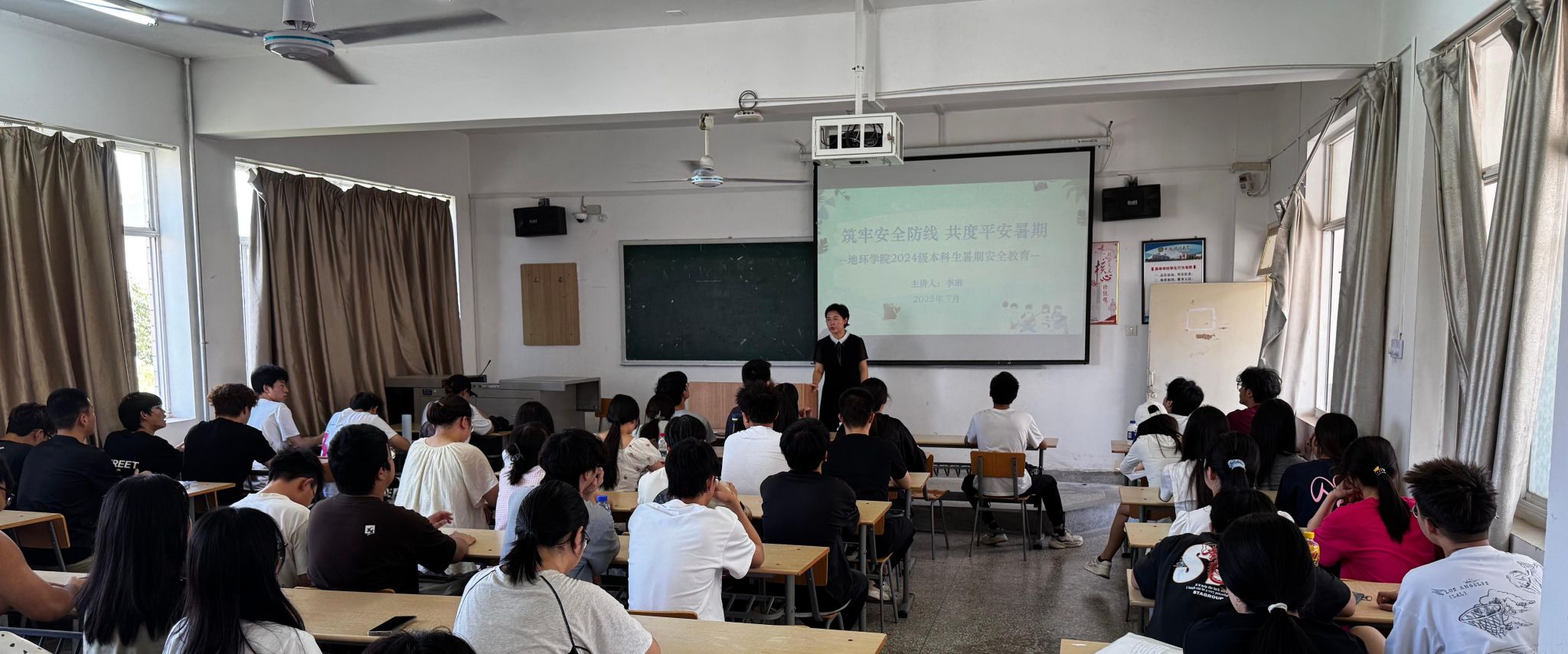 为提升2024级本科生假期安全防范意识,公司学工办主任、2024级辅导员李琳以“筑牢安全防线,共度平安暑假”为主题,7月4日-7月7日分批次在1教513、3教413、9教109教室为 9个班全体同学开展安全教育。