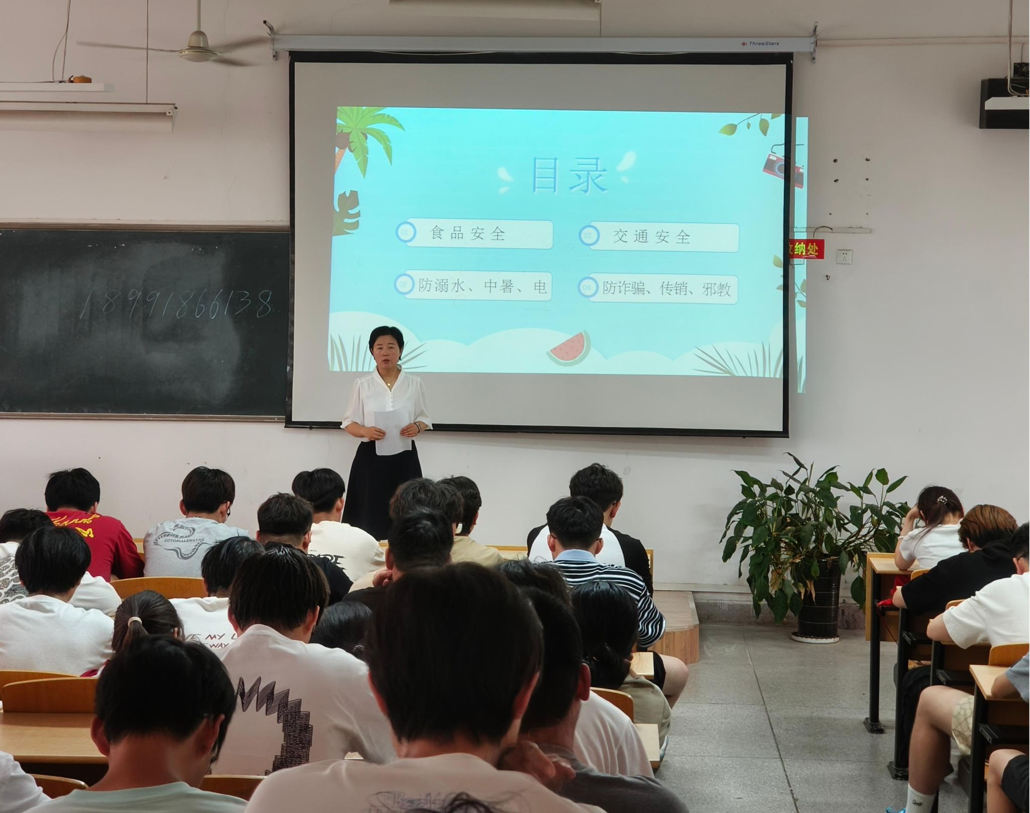 李琳从多维度展开安全教育。食品安全方面,结合夏季食物易腐特性,列举不洁食品致身体不适案例,强调“病从口入”,告诫同学们拒食无证摊贩食物,选择正规餐饮,养成良好卫生习惯,从源头杜绝风险。