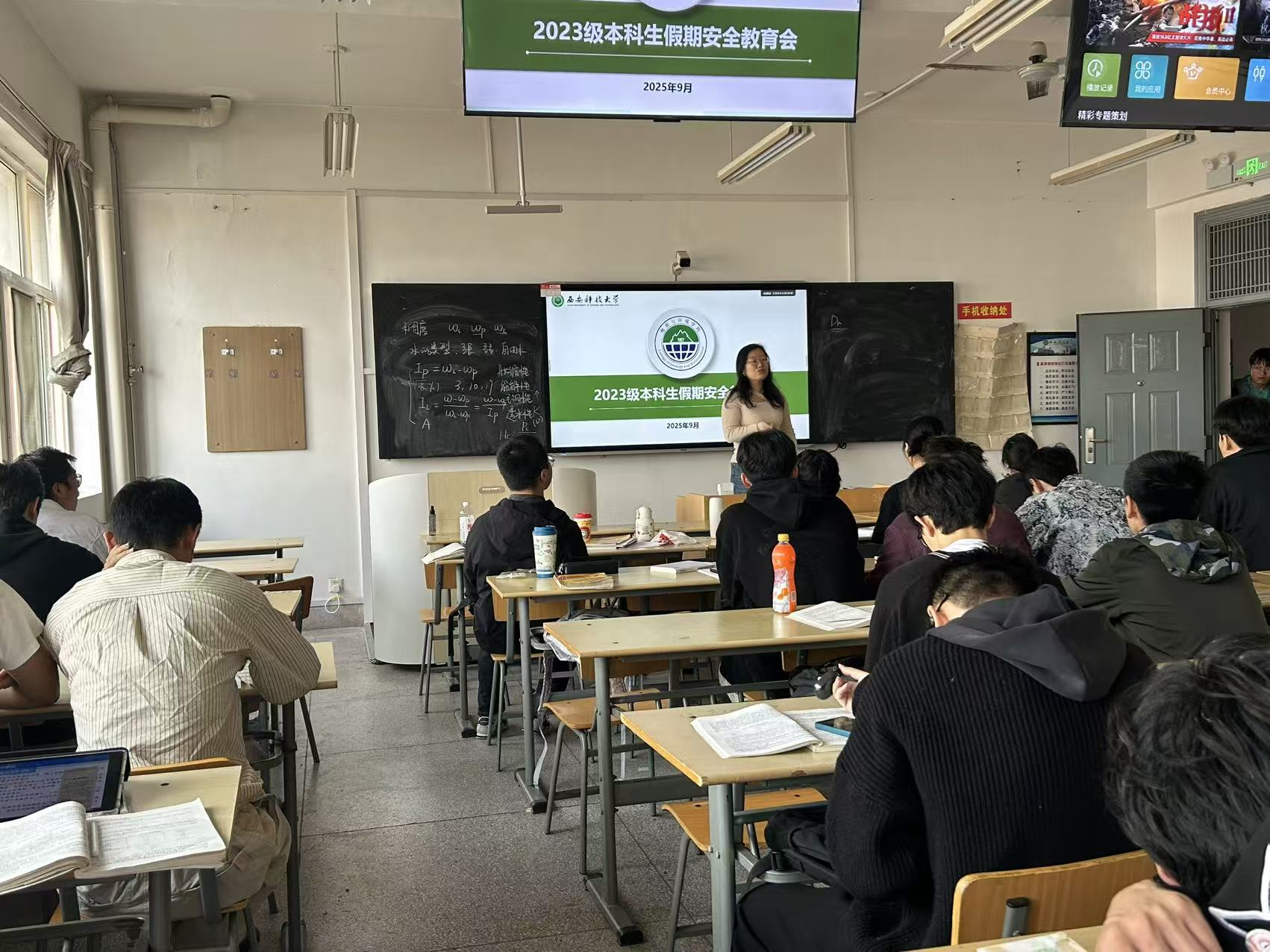 会上,老师们强调国庆假期人员流动大、安全风险增多的特点,提醒同学们时刻紧绷安全之弦。结合真实案例,围绕出行、饮食、网络、健康等多方面讲解安全重点:出行返家方面,建议提前规划路线,选高铁、正规客运等合规交通工具,同时提高防盗意识,妥善保管财物,抵地后向家人和辅导员报平安。饮食安全上,选择卫生达标、资质齐全的餐饮场所,不食用过期、变质、来源不明食物,避免暴饮暴食。网络安全方面,提醒警惕公共WiFi 风险,不点击陌生链接、不泄露身份证号和银行卡号等敏感信息,远离网络诈骗、赌博及校园贷等违法违规行为。