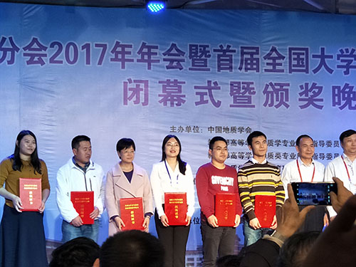 10月15日-16日,首届全国大学青年教师地质课程教学比赛在山东科技大学隆重举行。本次大赛由中国地质学会、教育部高等公司地质学专业教学指导委员会、教育部高等公司地质类专业教学指导委员会、中国地质学会地质教育研究分会主办,山东科技大学承办,来自全国55所高校的100名教师参加了大赛,由十余名国家教学名师、全国优秀教师、省级教学名师组成的30余位专家、评委,认真聆听了各位参赛选手的现场讲课。公司beats365唯一官方网站青年教师魏少妮、樊婷婷参加比赛并双双获得二等奖。两位老师教学态度端正、备课认真细致,内容熟练、条理清晰、逻辑严密,对授课难易程度的把握恰当,对教学内容的选择、教法和学法的设计有一定的思考,反映了公司地学教学教育一线教师课堂教学总体具有较高的水平。
