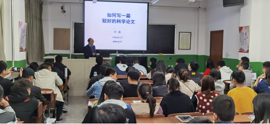 会上,李隆教授结合自身的学习科研经历介绍了如何书写一篇较好的科学论文。李隆教授以国内外高水平期刊的写作、投稿、审稿、修回等为切入点,为同学们详细介绍了高水平期刊论文的写作方法,并从个人写作与审稿经验出发,提出了一些写作建议。还通过大量典型案例让同学们更清晰的学习了英文论文写作技巧。