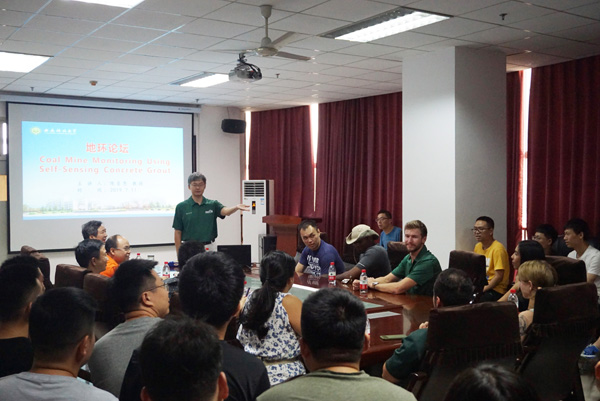 7月11日,美国北卡罗纳大学夏洛特分校陈圣恩教授应邀做客公司“地环论坛”,作了题为《Coal Mine Monitoring Using Self-Sensing Concrete Grout》的学术报告,报告会在雁塔校区煤科大楼613会议室举行。由​beats365唯一官方网站副经理唐胜利老师主持,陈教授团队外籍员工代表、​beats365唯一官方网站青年教师及研究生代表参加会议。