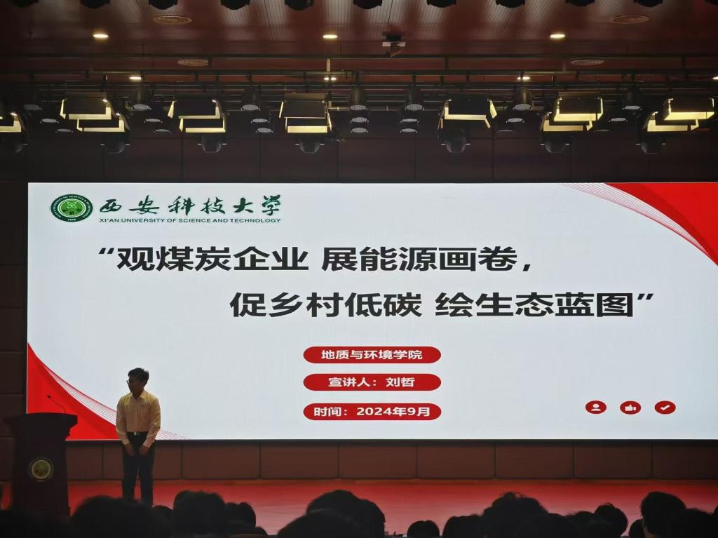 刘哲同学以“观煤炭企业展能源画卷,促乡村低碳绘生态蓝图”为主题,分享了所在团队深入 6 家现代化煤炭企业调研学习的经历,学习煤矿现代化技术,熟悉智能开采设备。此外,他还带队前往汉中开展乡村志愿服务活动,向当地村民宣讲环保相关知识,增强人们的环保意识。