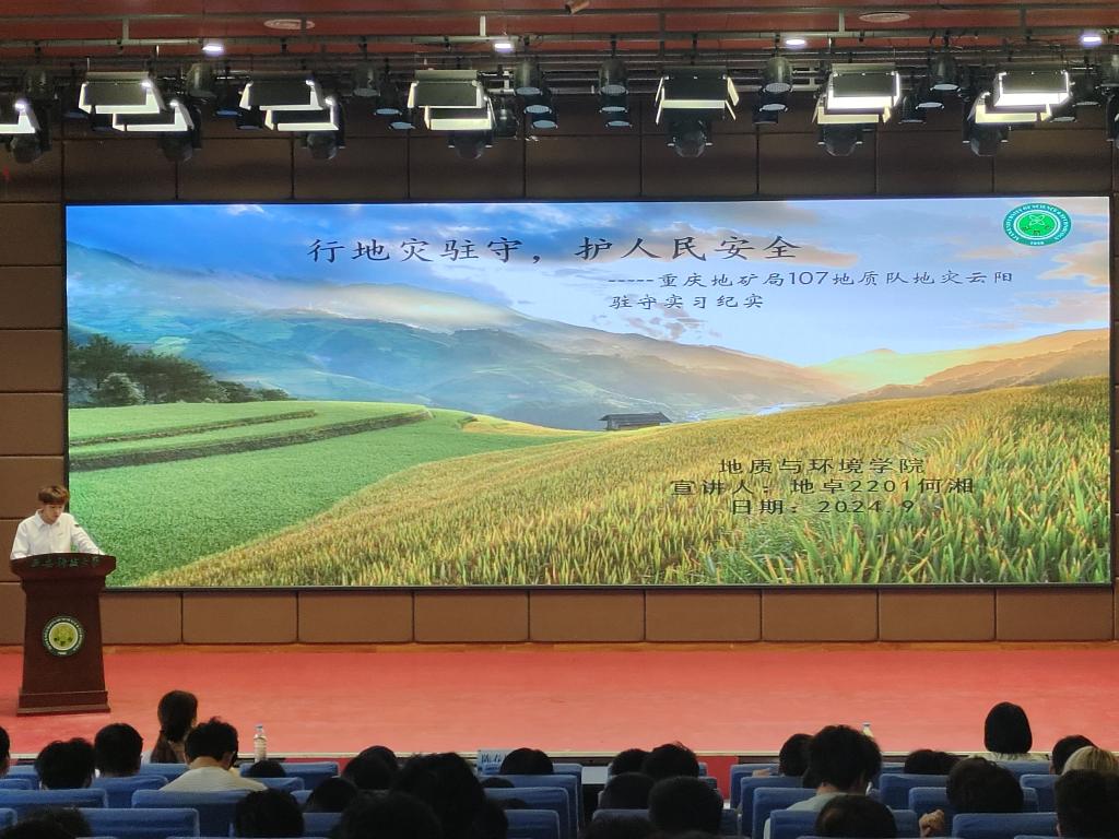 何湘同学以“行地灾驻守,护人民安全”为主题,分享自己在地矿局107地质队的实习生活,通过参与地质灾害的监测、预警和防治工作,将理论知识与实际操作紧密结合,深刻领略了地质工程的魅力与挑战。在实习期间,何湘同学积极参与实地勘察、数据收集与分析,逐渐掌握了识别地质灾害隐患的方法和技巧。他将继续努力学习,提升专业素养,为地质工程事业的发展贡献力量。