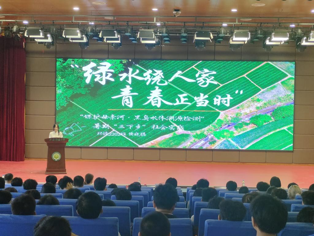 侯晓聪同学以“绿水绕人家,青春正当时”为主题,就“为了什么”、“做了什么”、“收获了什么”三个方面对暑假的社会实践工作进行了全面总结。同学们在实践活动中提升了环保意识和社会责任感,深入学习了习近平生态文明思想。实践活动也使同学们对于所学专业的发展方向和前景有了更深的认知。