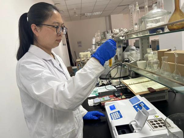实践团成员在带队老师的指导下,利用专业的检测设备和技术对水样进行检测,测量水中pH、电导率、TP、TN、六价铬等指标,为本次活动提供了坚实的数据支持。