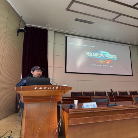 报告会上,唐教授从地球演化的历史出发,深入浅出地阐述了地球热能在冷热周期中的渐进衰变过程。他指出,岩石圈的裂解与聚合是地球冷热波动相互转化的结果,这一过程引发了地表的一系列变迁。唐教授通过地球模拟器2.0的模拟结果,展示了板块起源的龟裂模式,特别是洋中脊裂谷的形成过程,令在场师生耳目一新。在报告的第二部分,唐教授通过建立地球系统的热平衡方程,详细解释了岩石圈破裂如何诱发地球冷热波动的机制。他提出,地球的热演化是驱动其内部变化的核心动力,而岩石圈的破裂则是这一过程中的关键环节。最后,唐教授结合重大地质事件与地球冷热波动的相关性,提出了同源驱动力的思考与研究展望。他强调,地球系统的复杂性要求我们在研究中不断突破传统思维,运用跨学科的方法探索地球的奥秘。