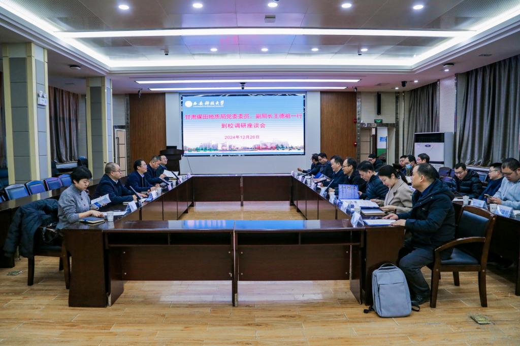 12月26日,甘肃煤田地质局副局长王德祖一行来校调研交流,副董事长曹明会见并主持了座谈交流会。