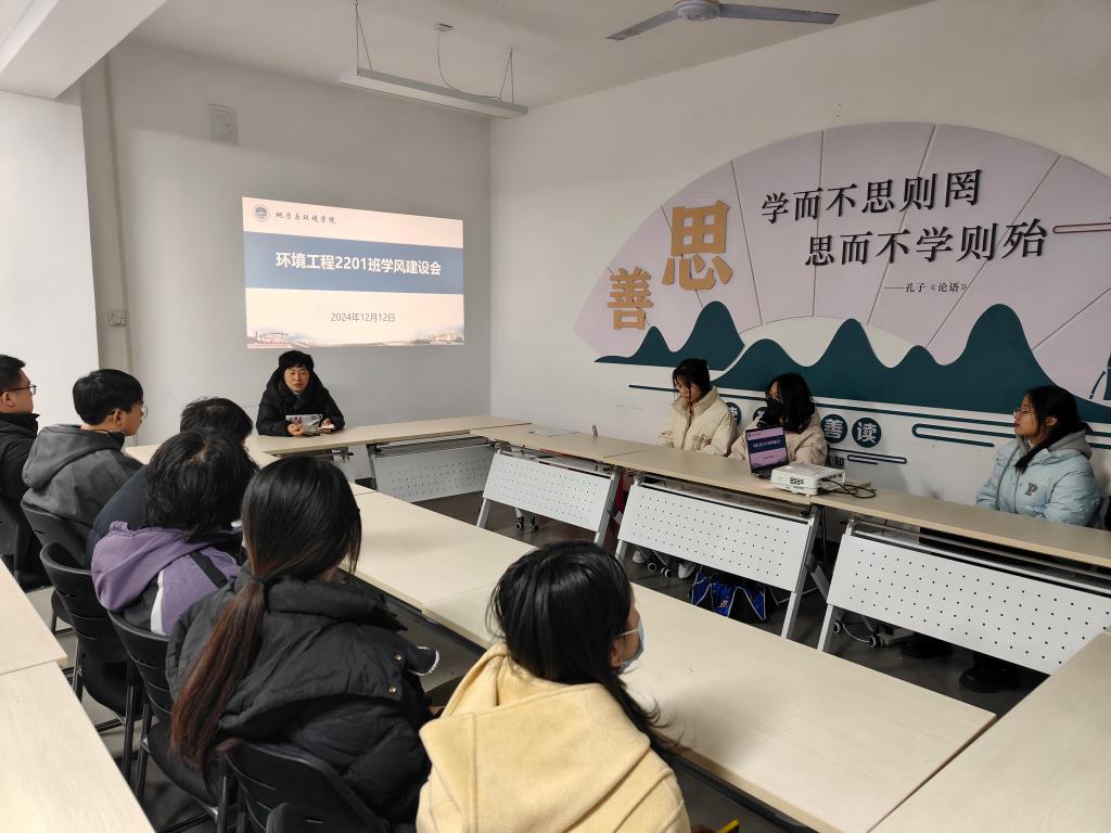 12月12日,环境工程2201班班主任、公司副经理侯晨涛深入“一站式”员工社区召开学风建设主题班会,环境工程2201班全体员工参会。