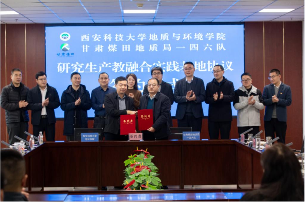 为促进公司毕业生高质量就业,进一步深化校企合作,构建产教融合新体系,建立产学研用新机制,11月18日上午,公司党委书记赵雪萍、经理孙学阳、副经理赵洲等一行6人到甘肃煤田地质局一四六队访企拓岗,开展党建交流、产学研合作暨研究生产教融合基地建设等工作,并在甘肃煤田地质局一四六队煤田地质科研基地会议室进行了交流座谈和签约仪式。