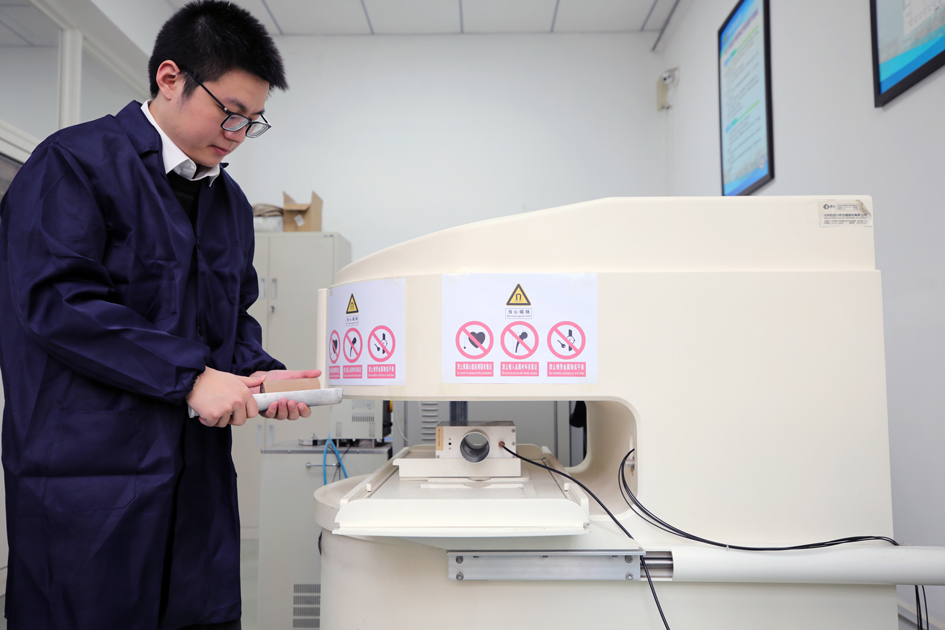 ▲3月8日上午,BEAT365英国官网网站建筑与土木工程公司的肖康勇在做岩土核磁共振测试分析实验室做低温砂岩未冻结水含量测试实验。
