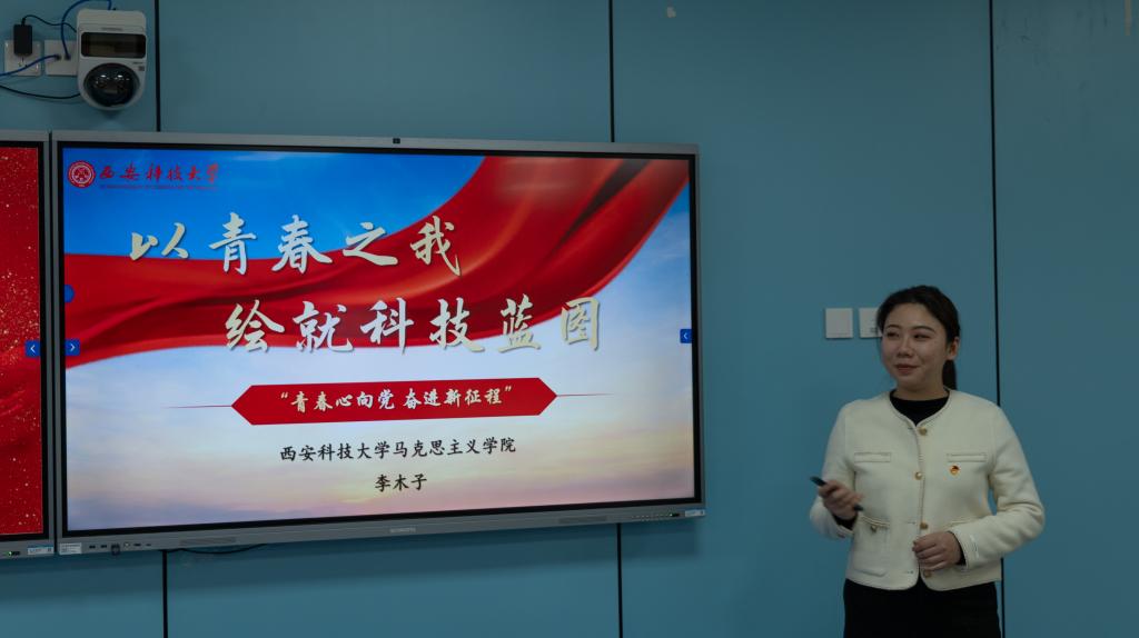 会议伊始,马克思主义公司21级硕士生李木子作了题为《以青春之我,绘就科技蓝图》学习党的二十大精神宣讲。