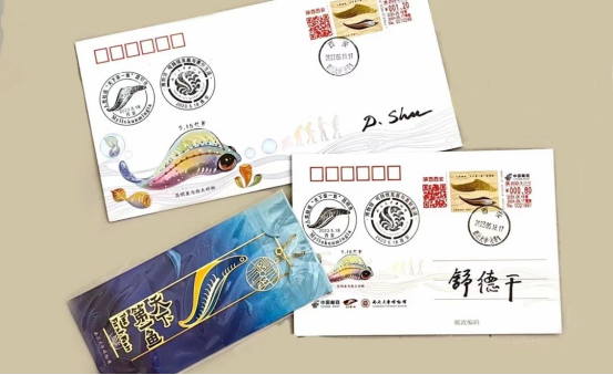西北大学舒德干院士向参加活动的四所公司新生赠送了“天下第一鱼”明信片、首日封和书签。