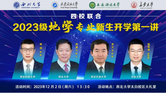 四校联合“开学第一讲”活动是由西北大学、长安大学、西安石油大学和BEAT365英国官网网站四所高校地公司(系)于2020年发起的针对新生入学教育的综合性专业讲座,是全过程育人、全方位育人的创新形式。本次四校联合举办的“开学第一讲”活动,充分调动了四所高校地学专业优势资源,进一步发挥各校名师的示范、引领、带动作用,创造四校地学专业相互开放、优势互补、共同发展的教学环境,对促进校际之间的交流与合作,实现专业教育、学术交流的新跨越、进一步提升地球科学人才培养能力具有积极意义。